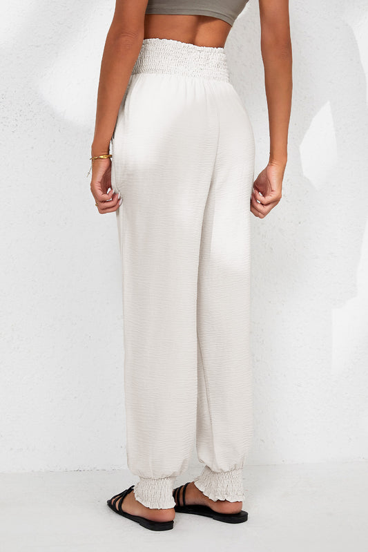 Apricot Linen Shirred High Waist Pocket Jogger Pants