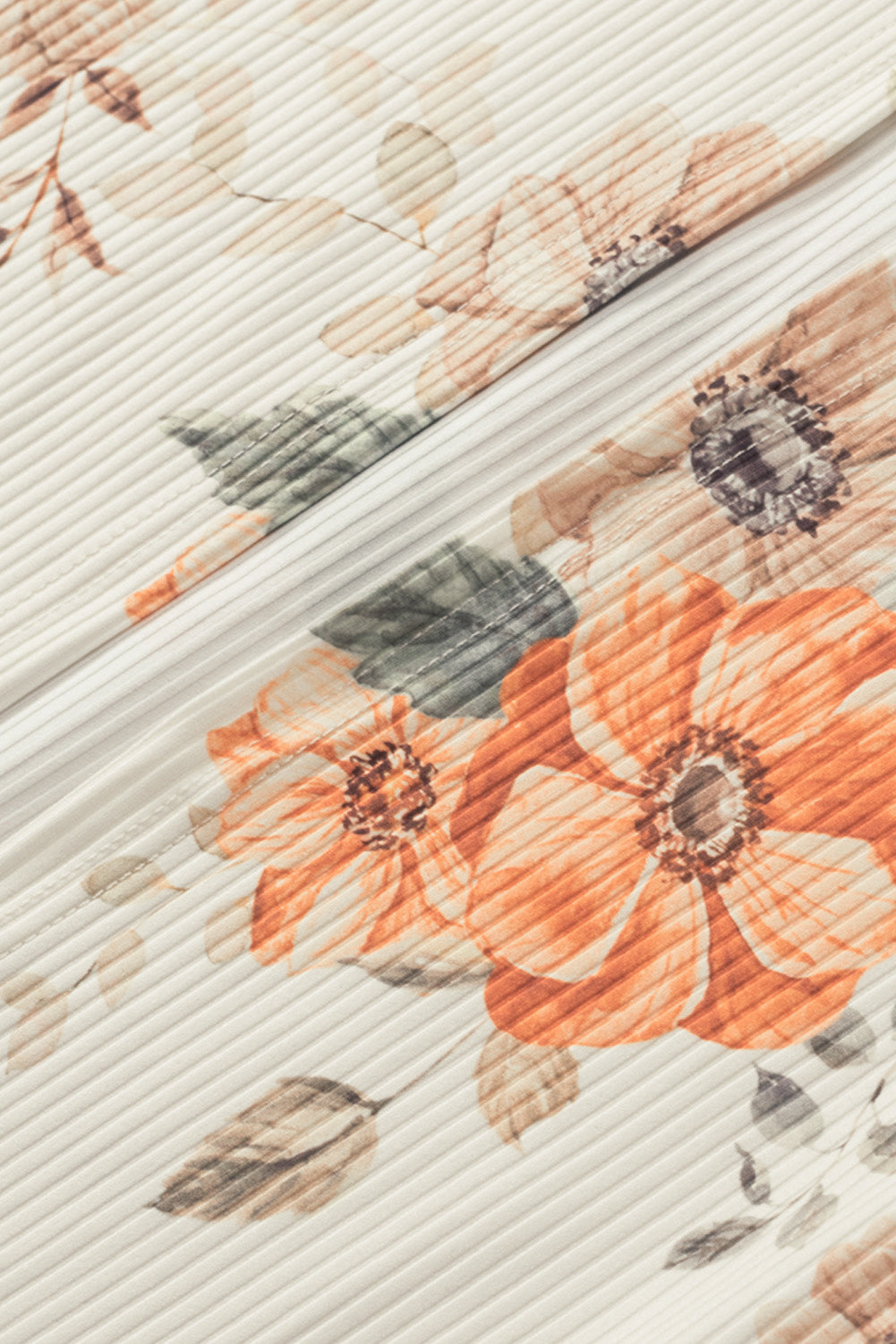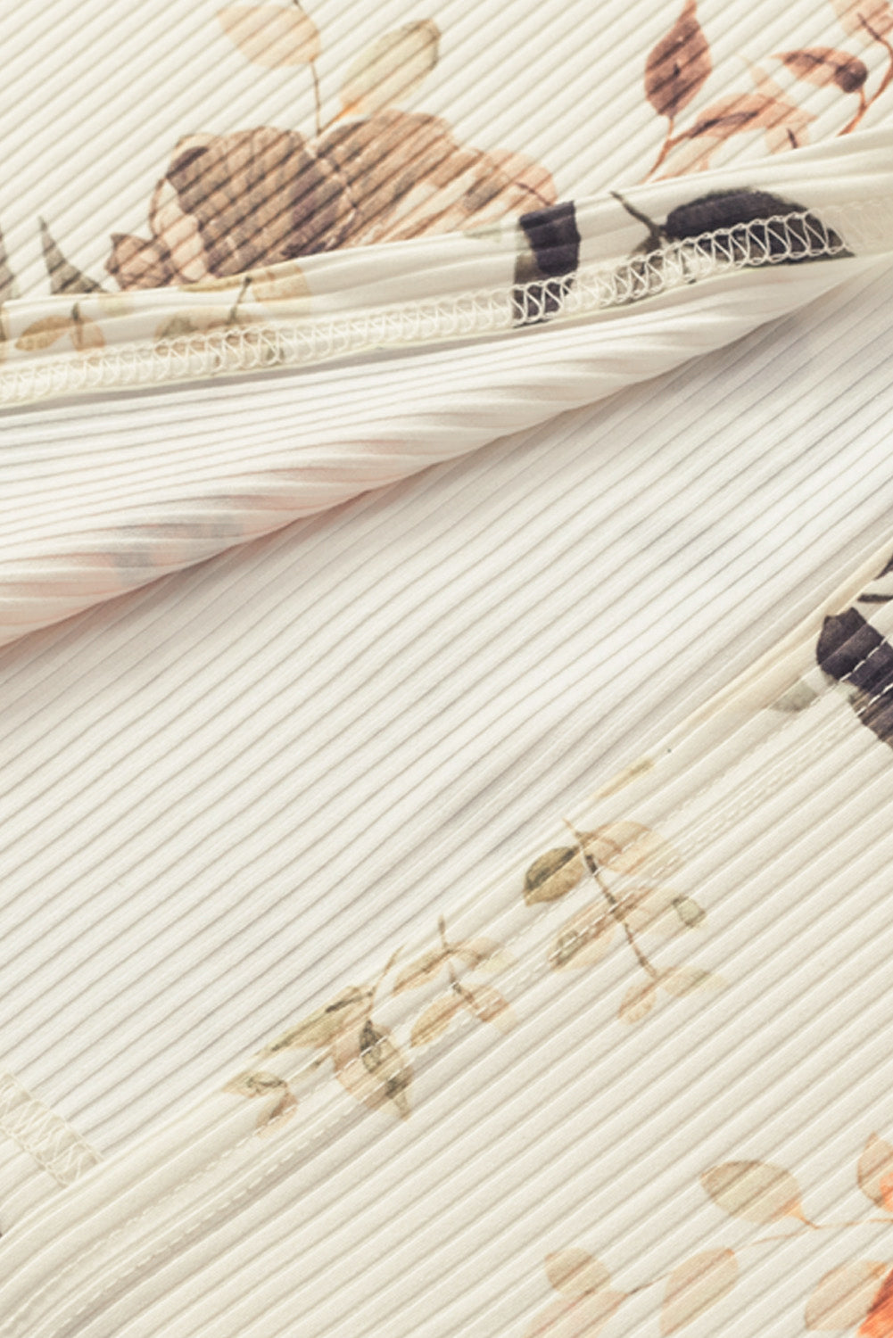Apricot Floral Print Ribbed Knit Slim Fit Cardigan