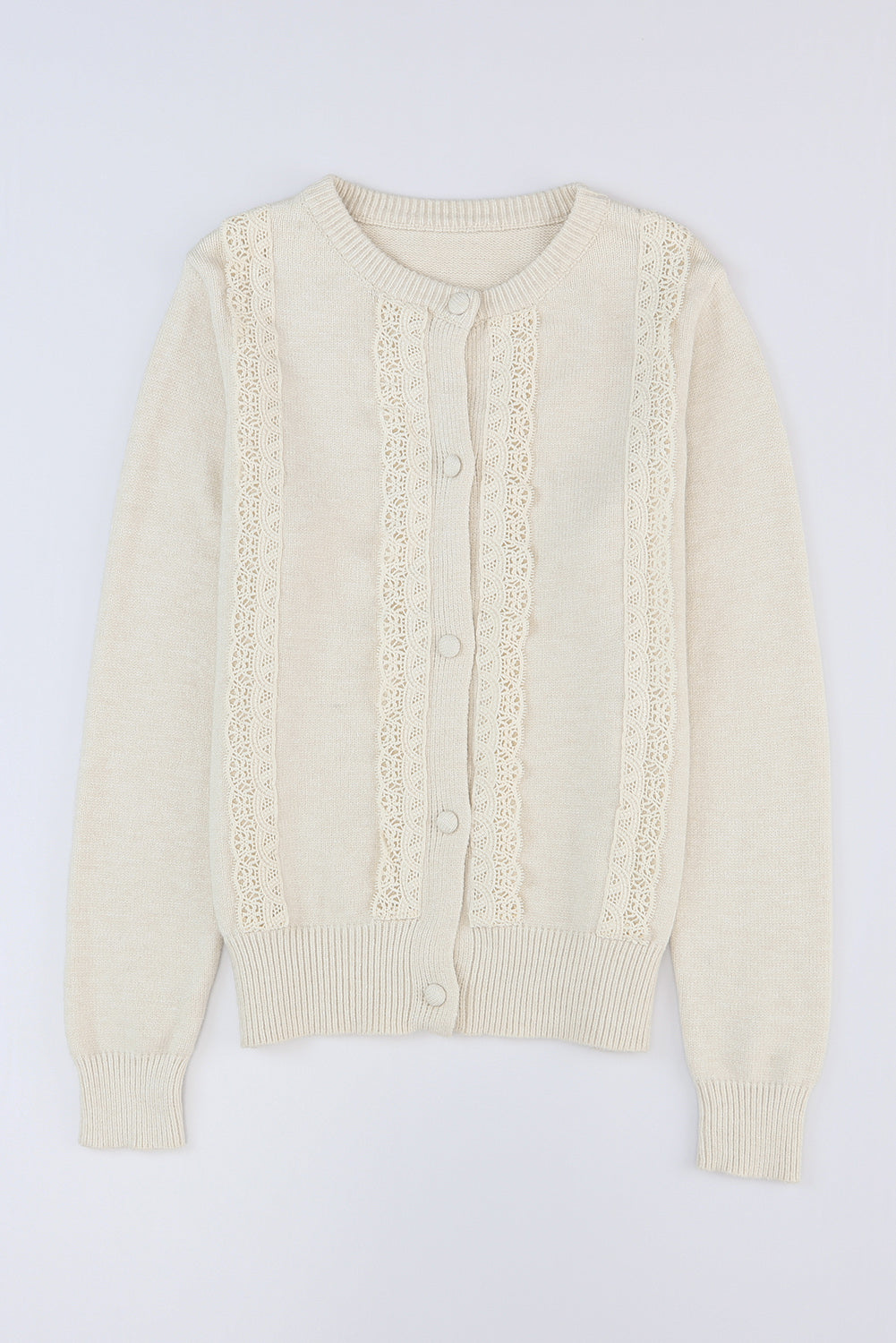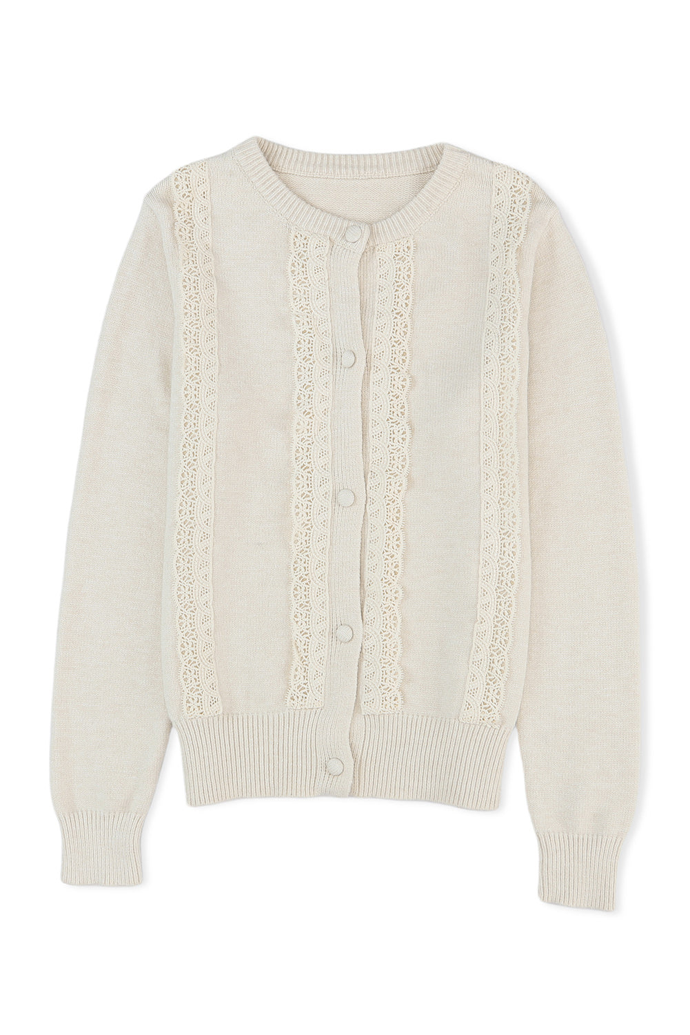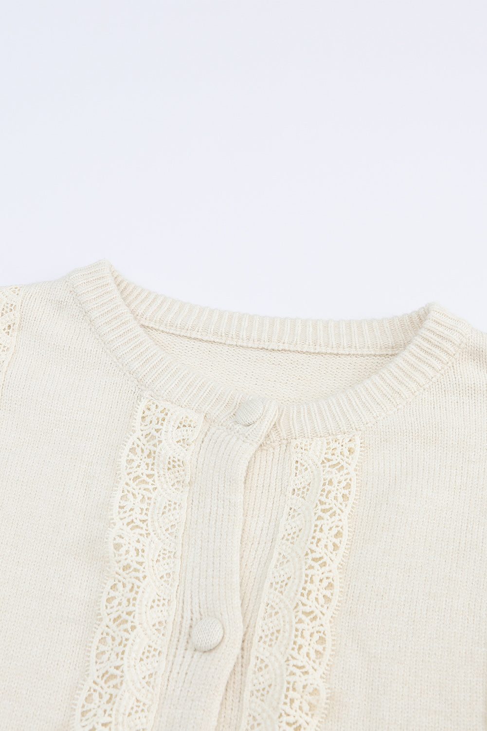 Apricot Lace Trim Ribbed Round Neck Button Up Cardigan