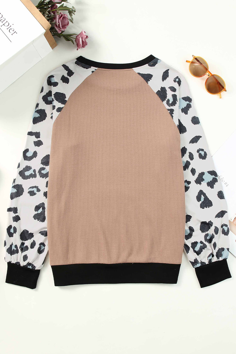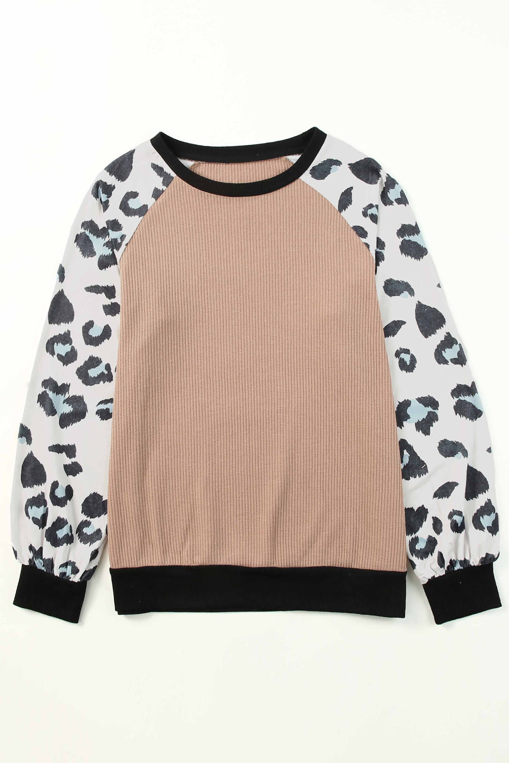 - This knit top is eye-popping with contrast leopard sleeves design splicing
