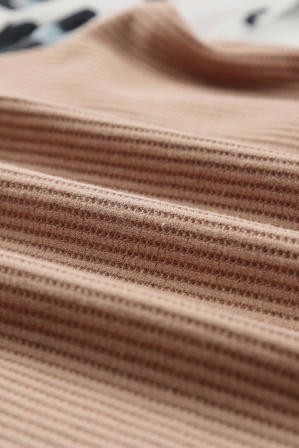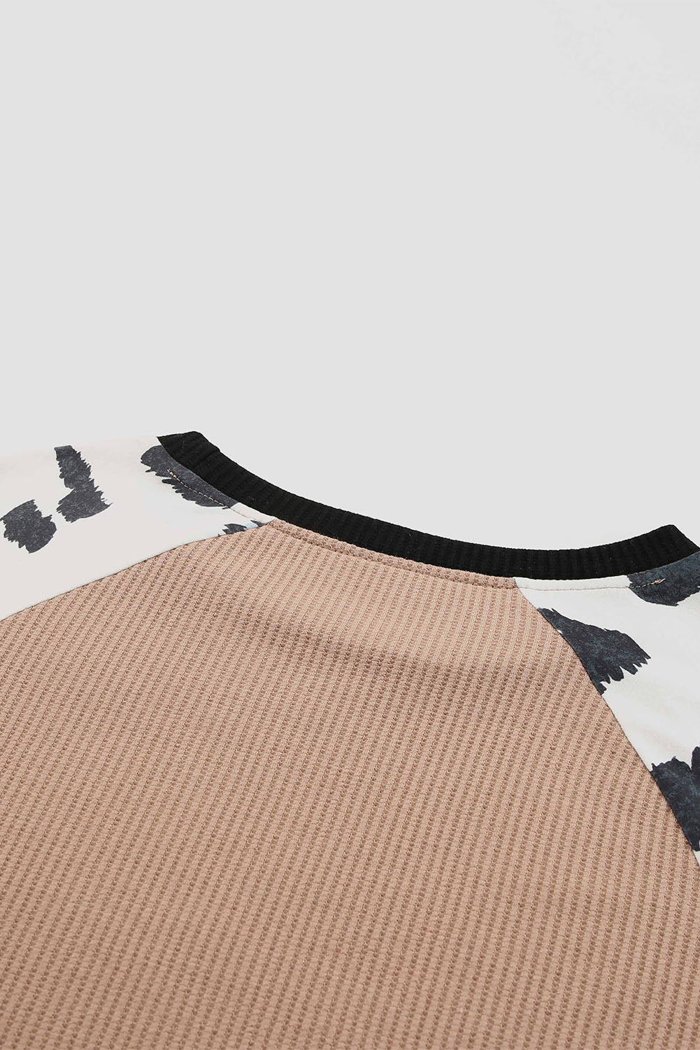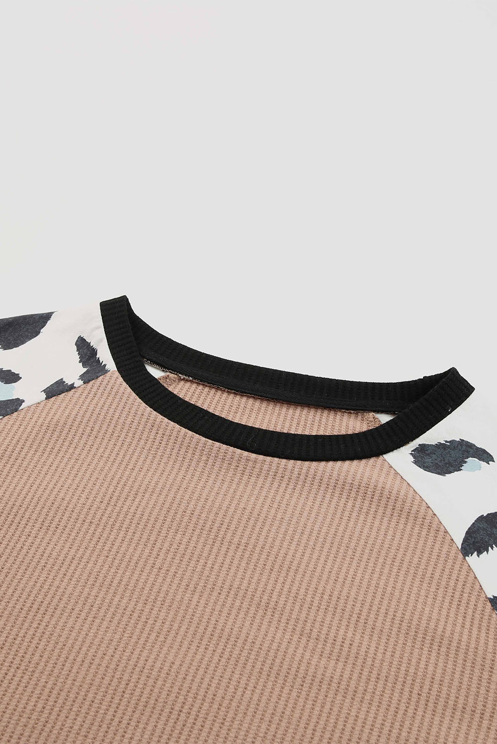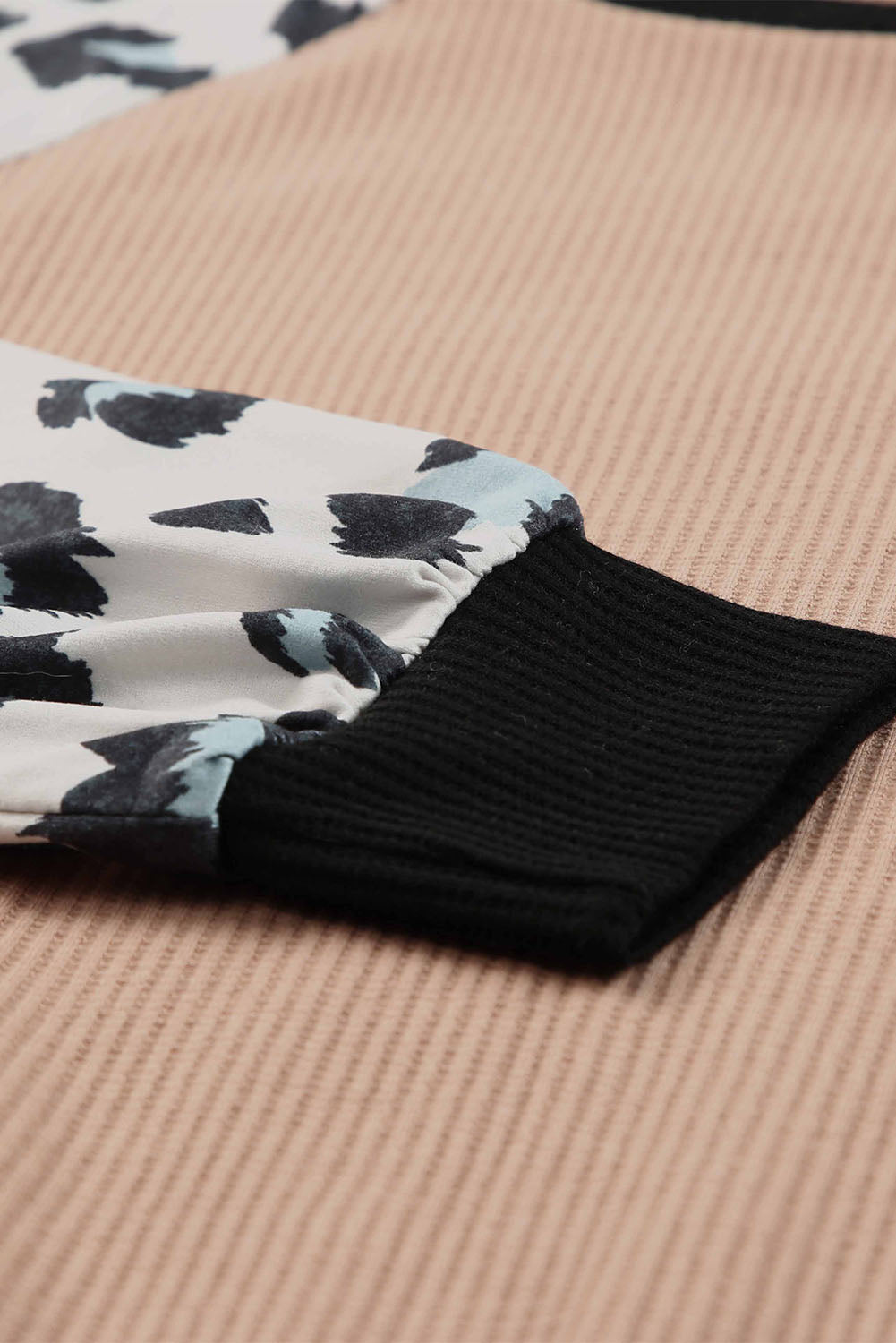 Apricot Leopard Sleeve Contrast Knitted Pullover Top