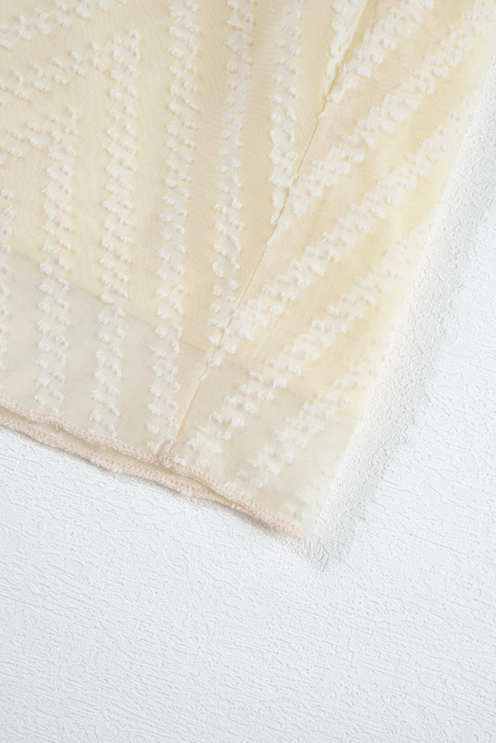 Apricot V Striped Sheer Puff Sleeve Surplice Knot Mini Dress