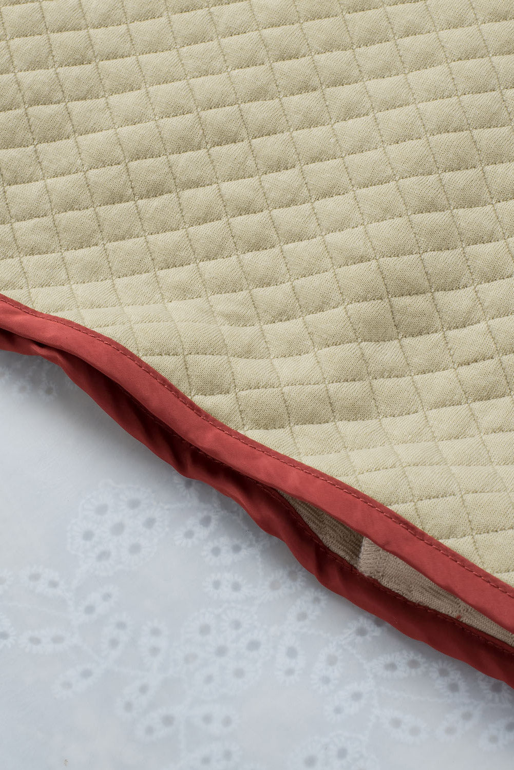 Beige Contrast Binding Snap Button Geometric Pullover Sweatshirt