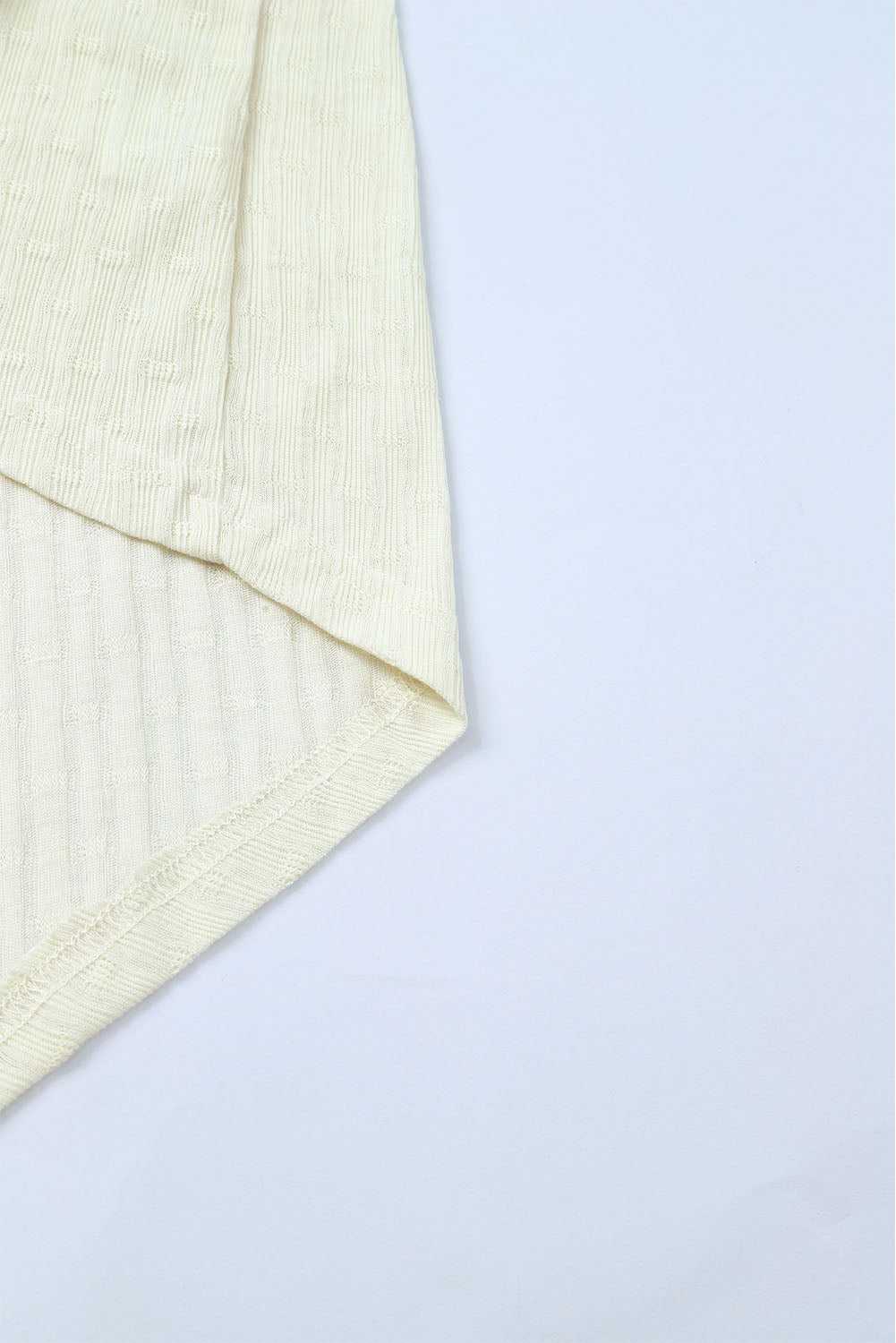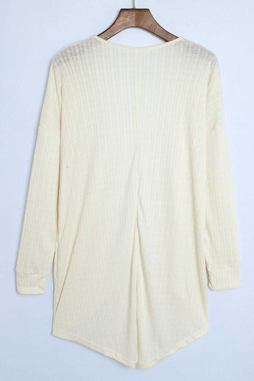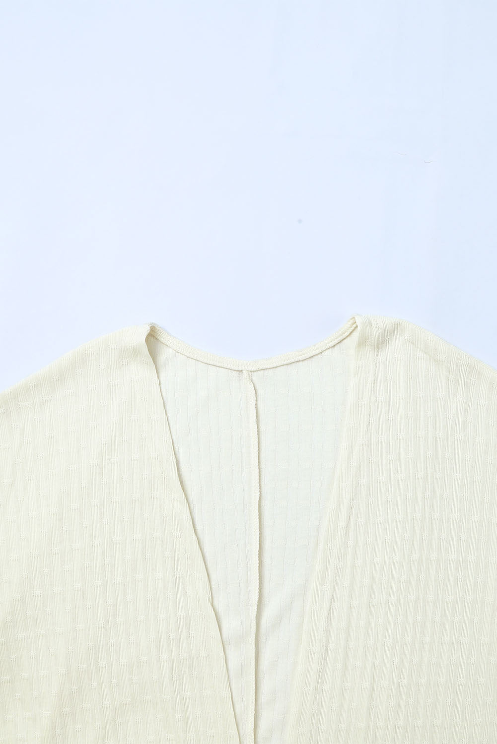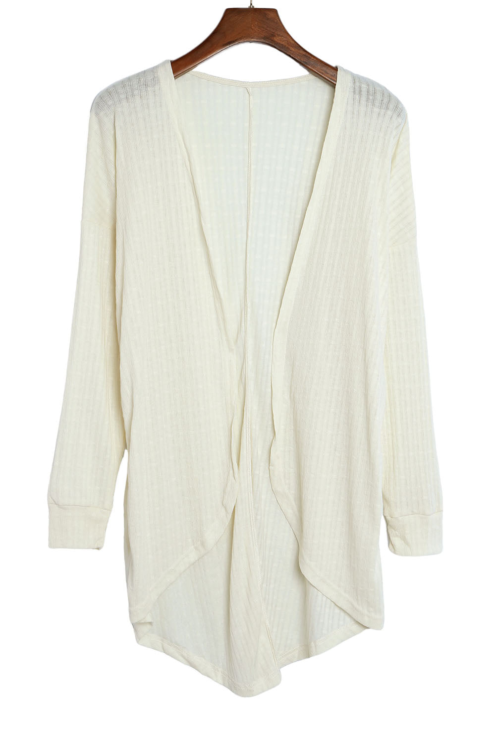 Beige Open Front Rounded Hem Textured Knit Cardigan