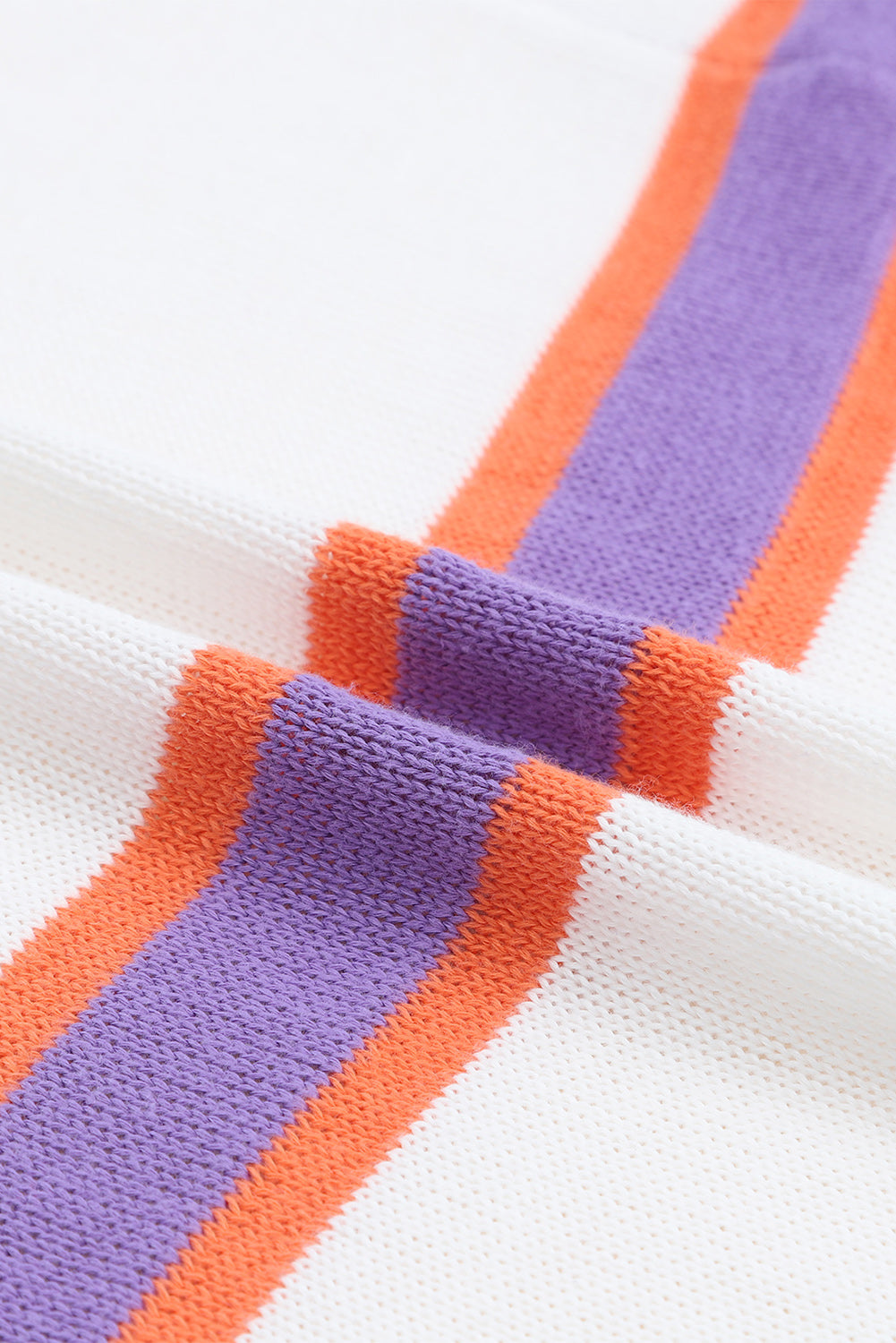 Beige Striped Long Sleeve Ribbed Trim Button Cardigan