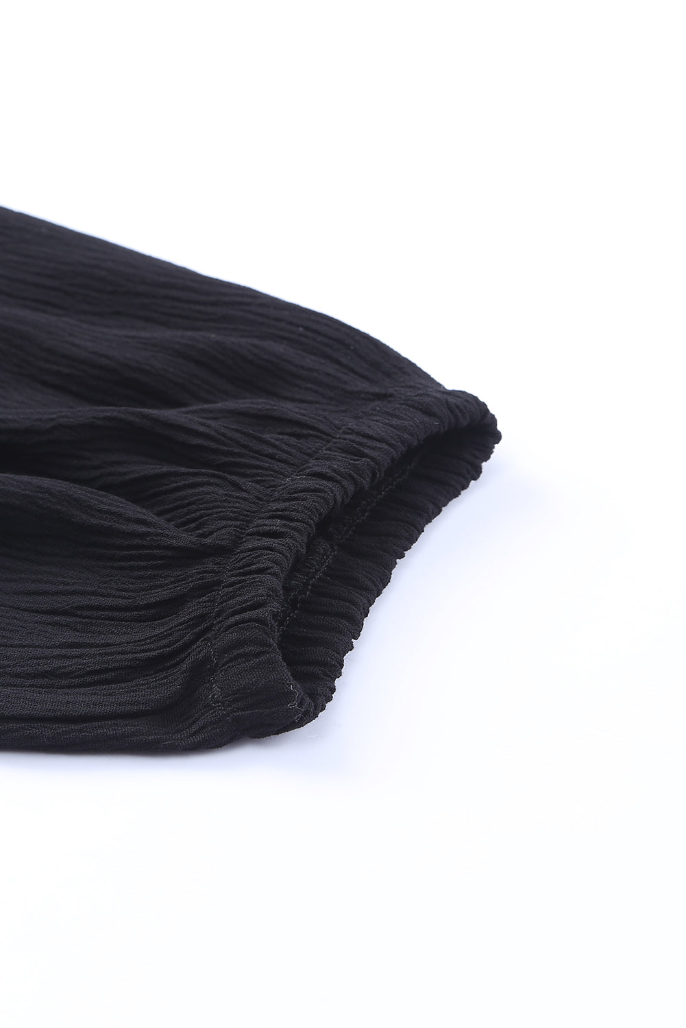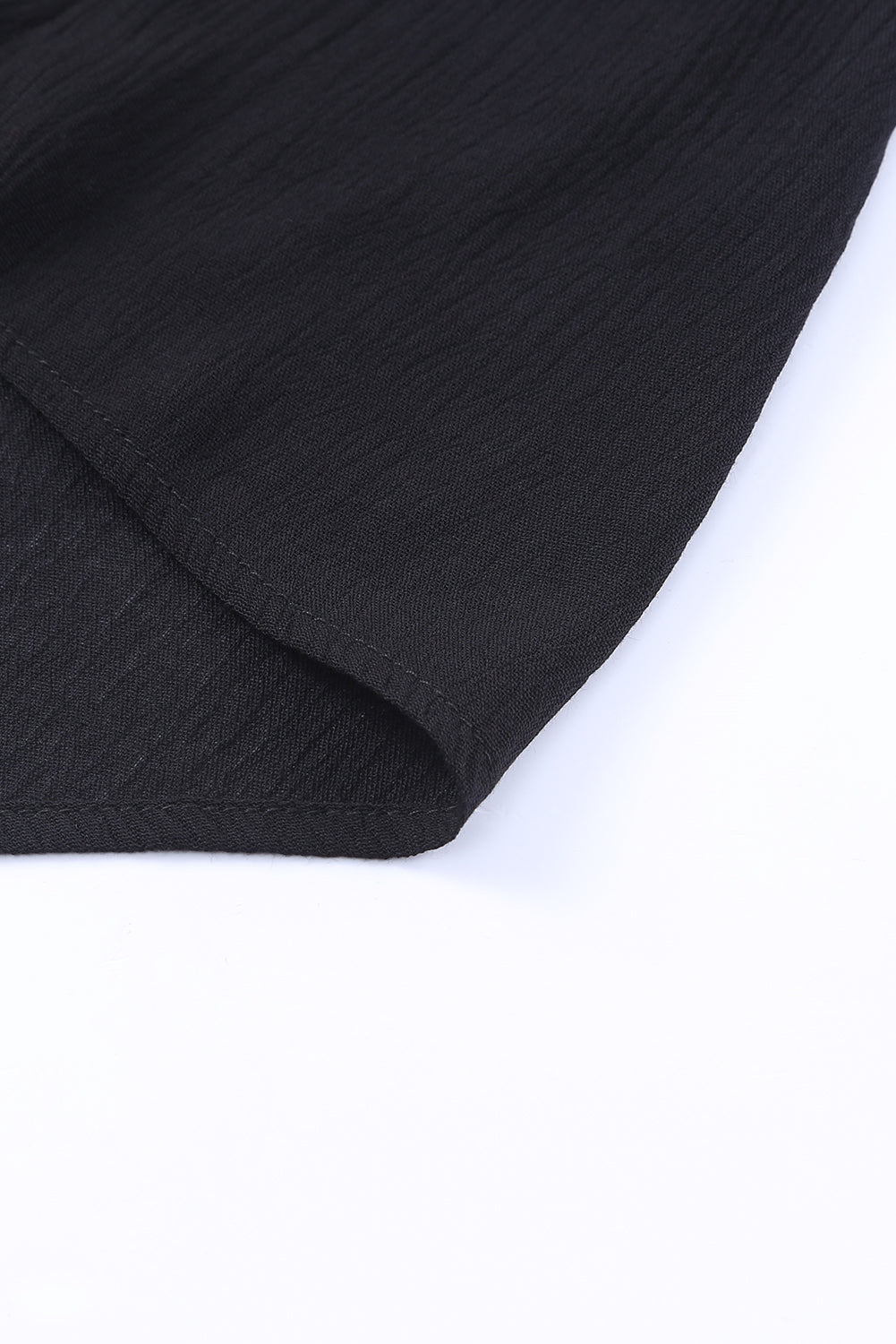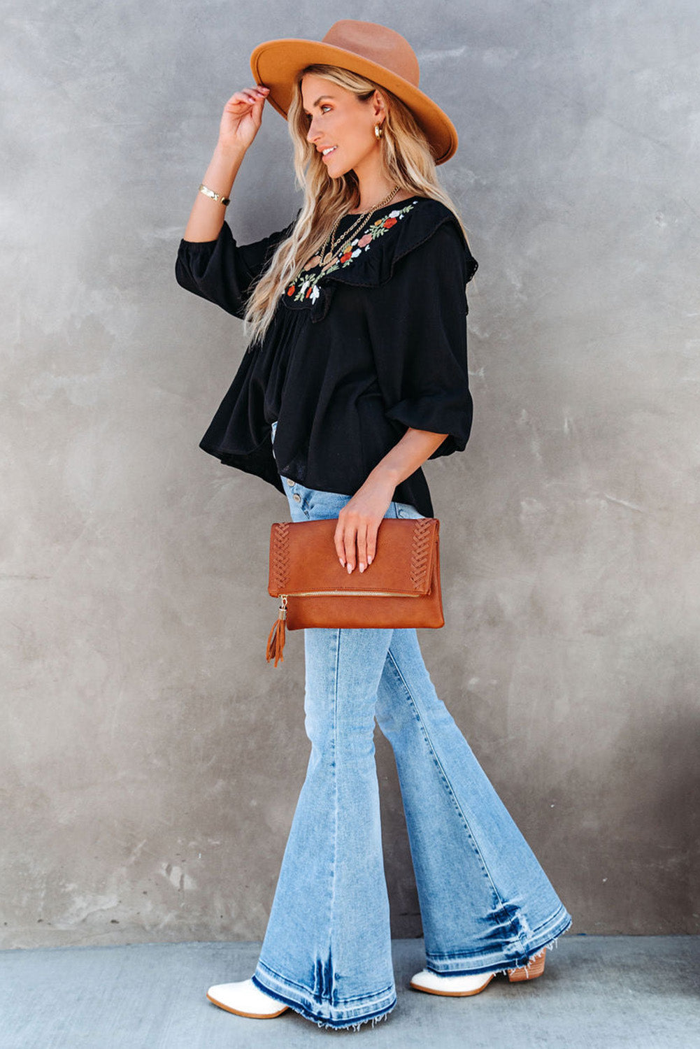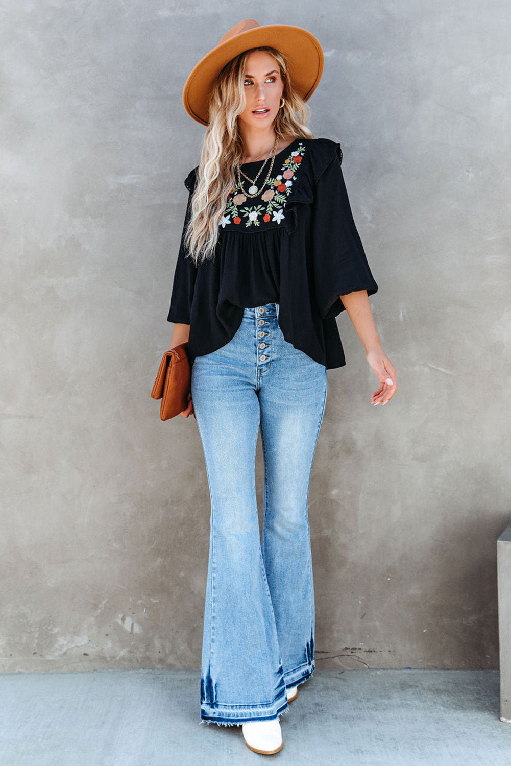 Black Bohemian Floral Embroidered Ruffled Babydoll Top