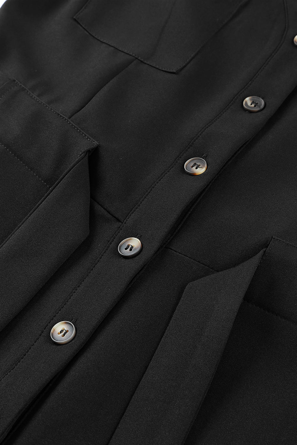 Black Buttoned Sleeveless Cropped Jumpsuit with Sash