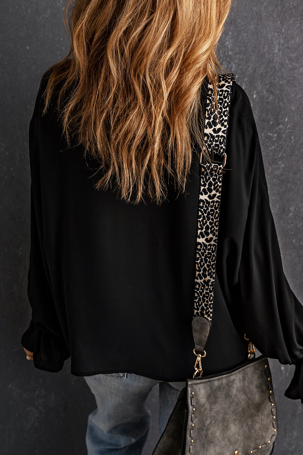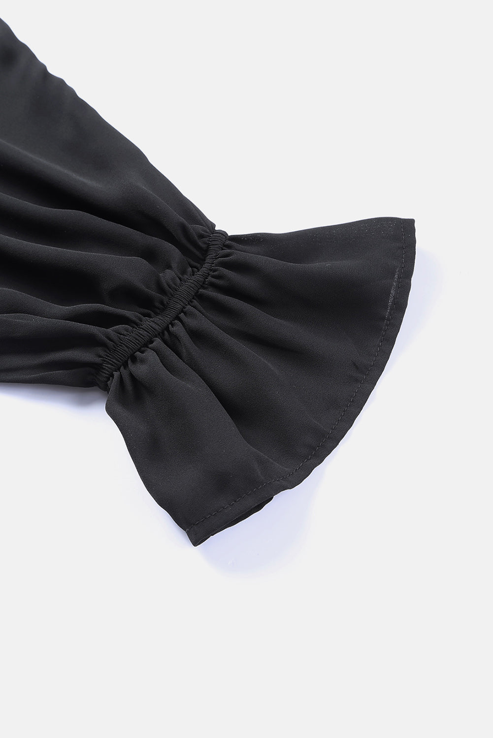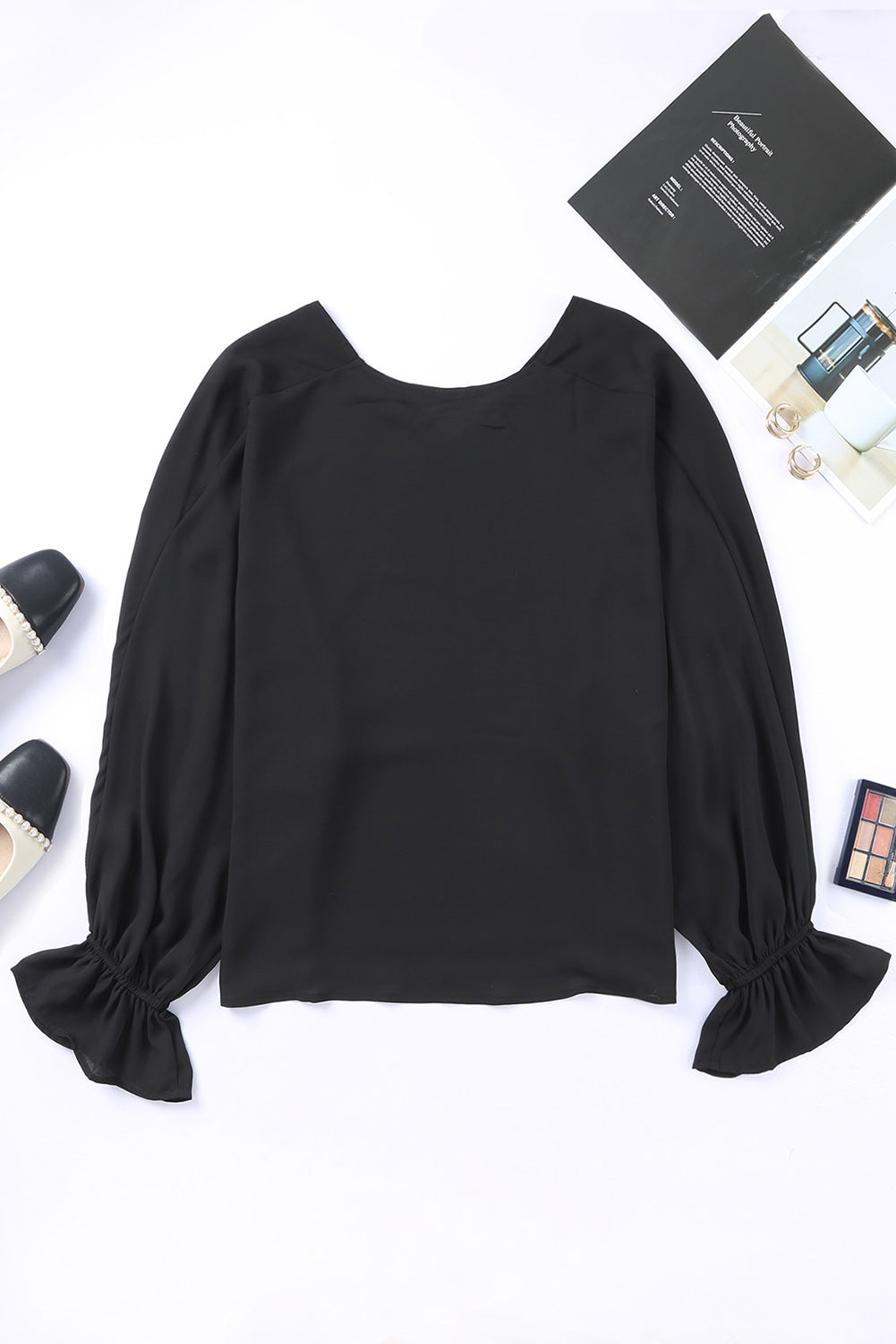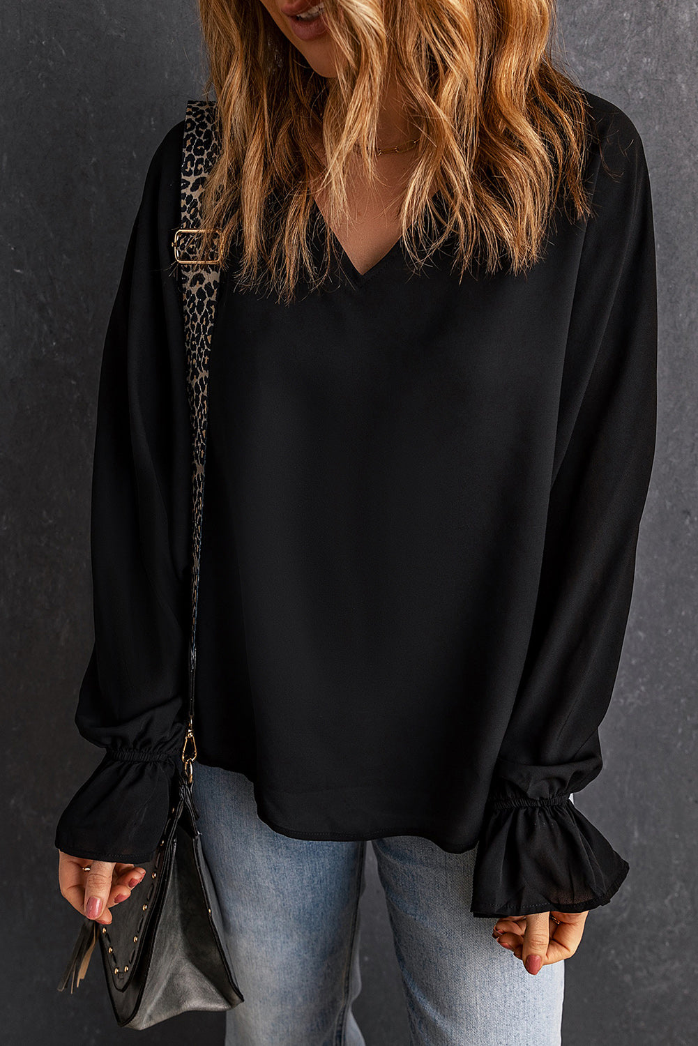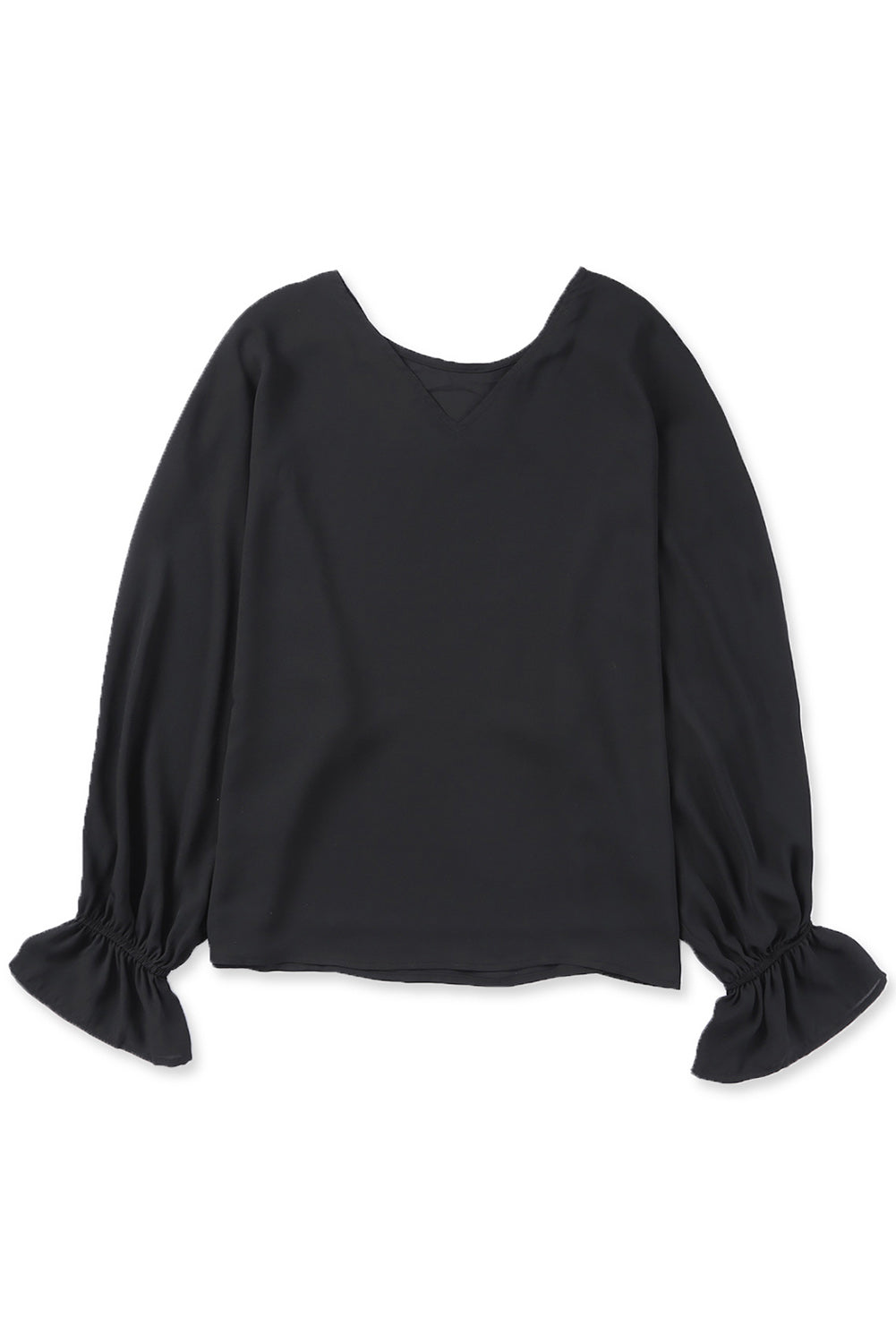 - This blouse is very elegant with a v neckline and flared cuff bishop sleeves