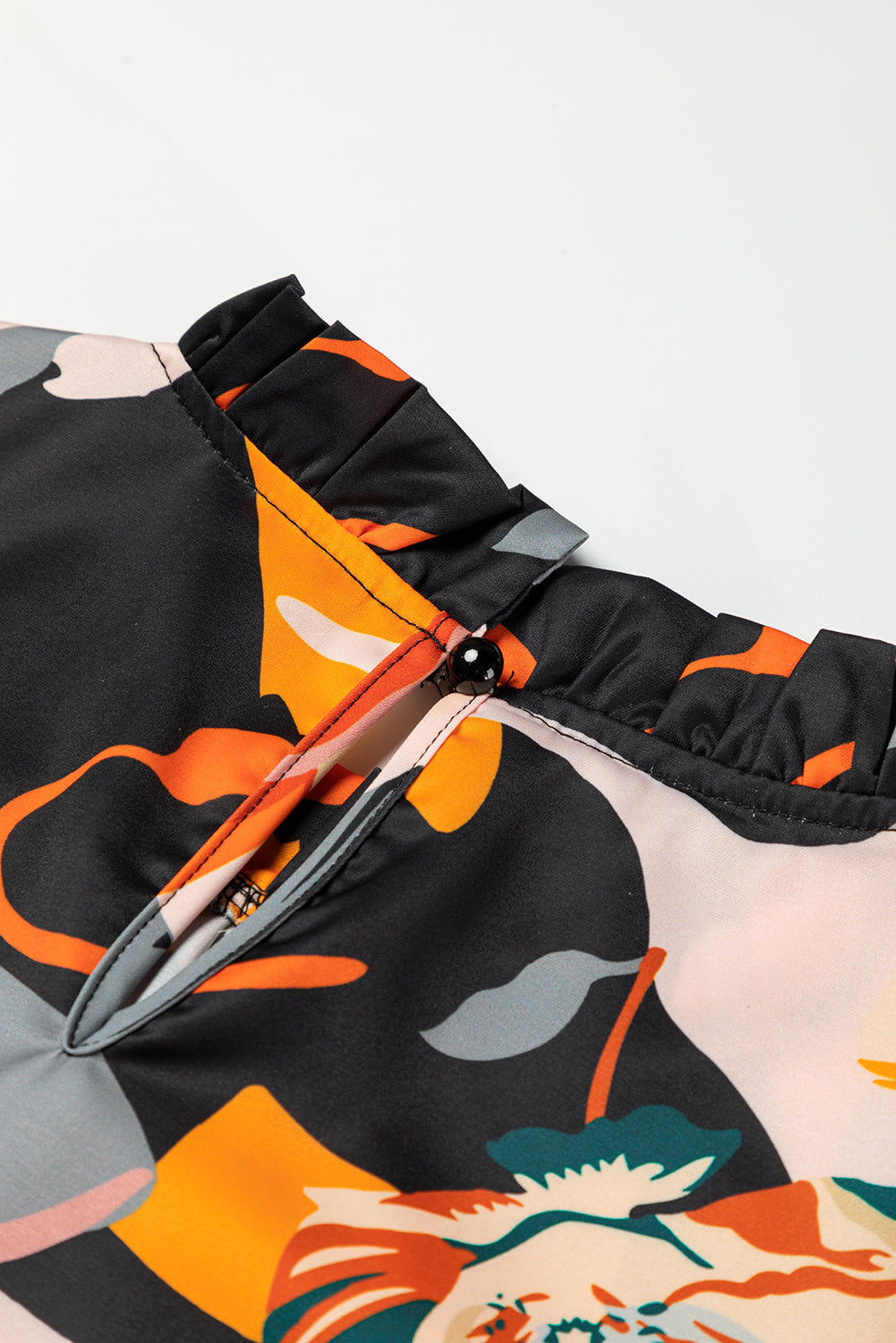 - Mock neck, ruffled long sleeve and keyhole detail on the back