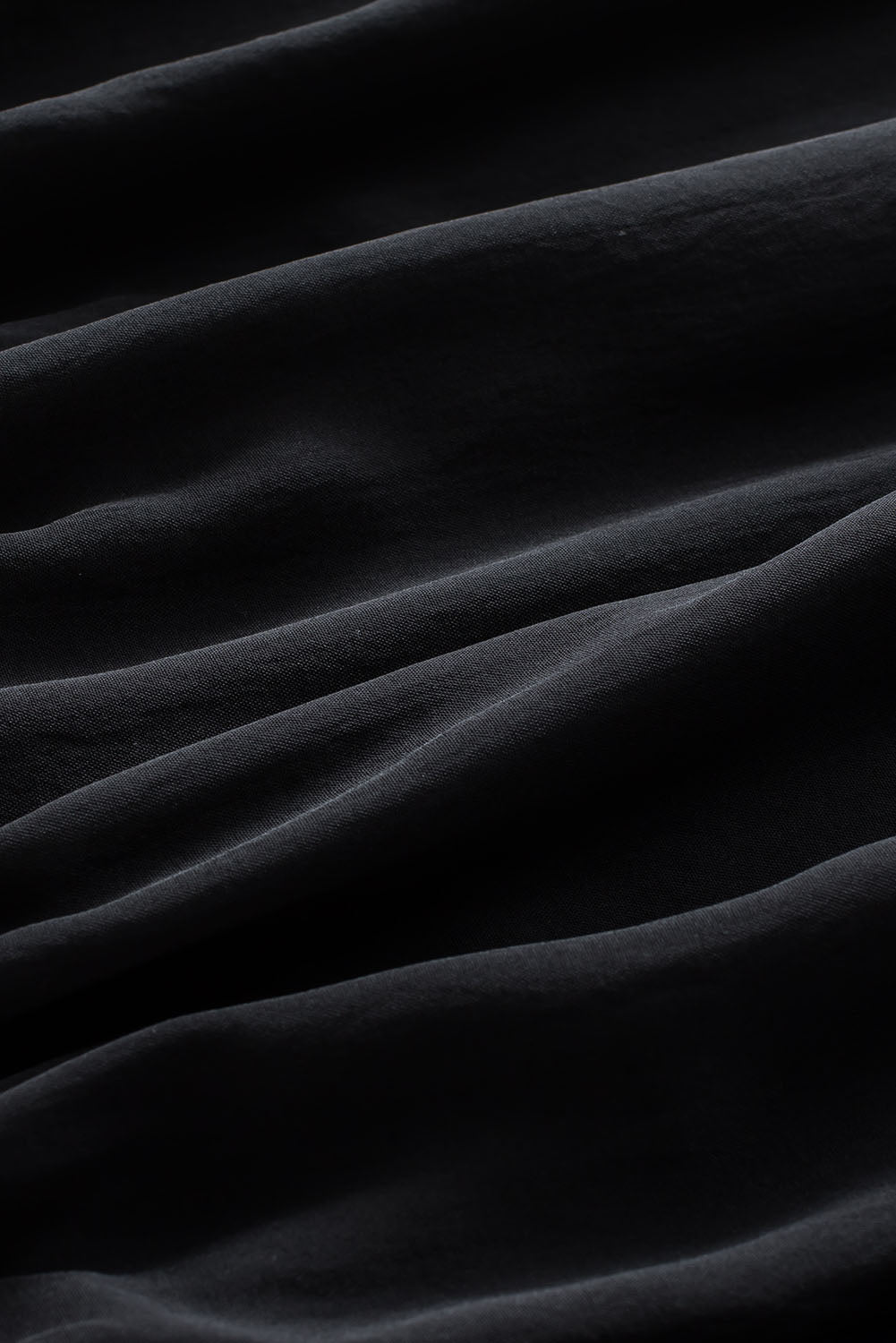Black Padded Shoulder Buttoned Cuffs Pleated Loose Blouse