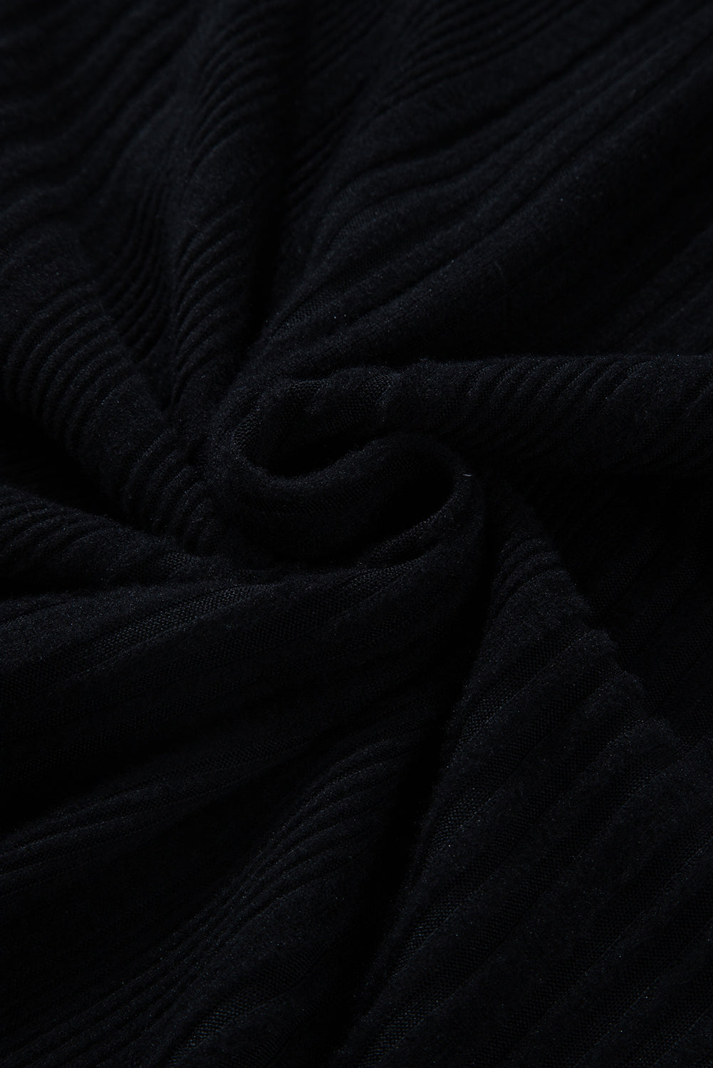 Black Ribbed Color Block Drop Shoulder Long Sleeve Mini Dress