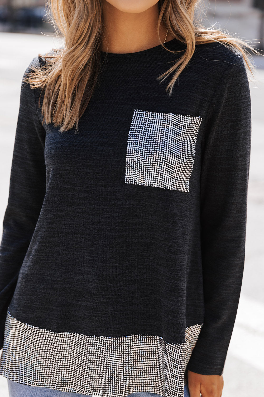 - Featured with a v-neckline, long sleeve, chest pocket, sequin, and loose fit