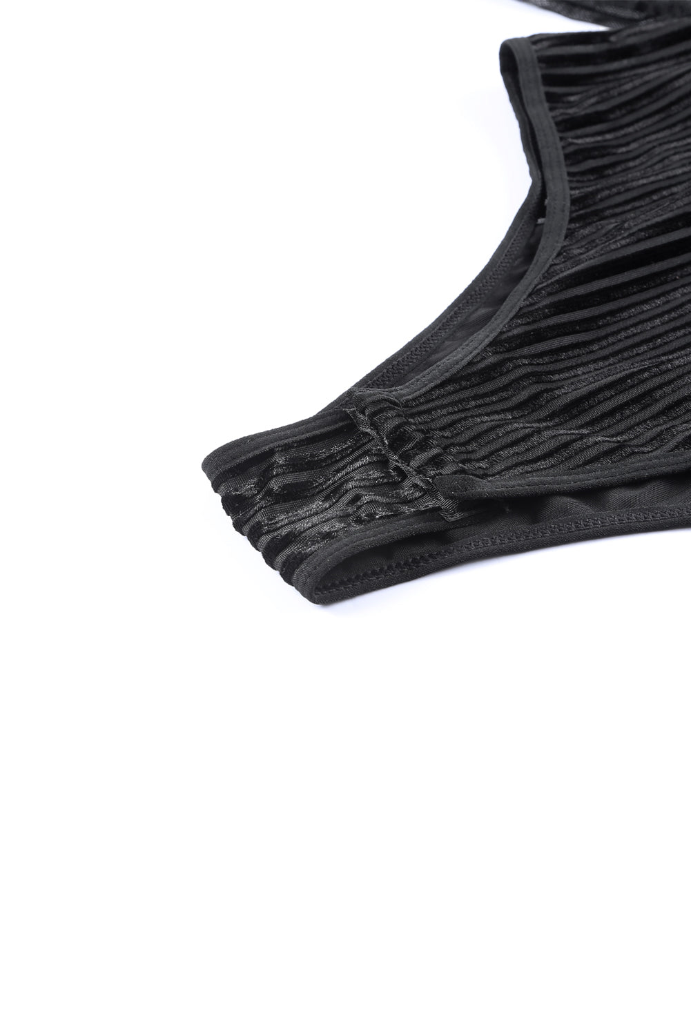 Black Sheer Dotty Long Sleeve Ribbed Velvet Bodysuit