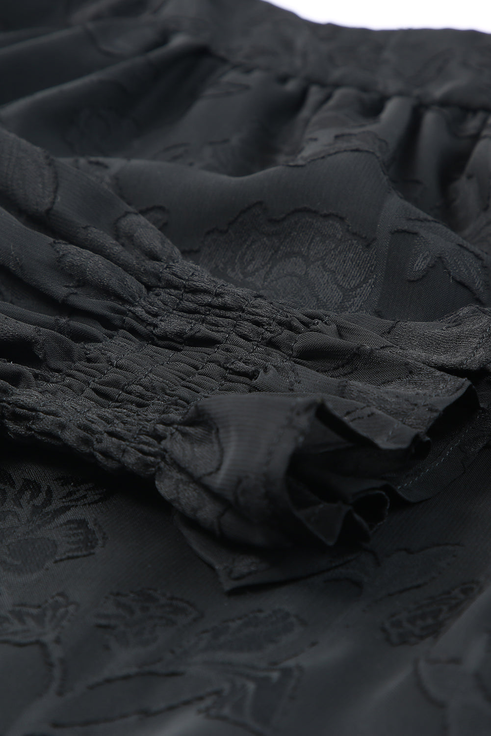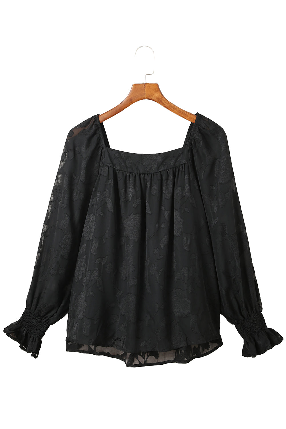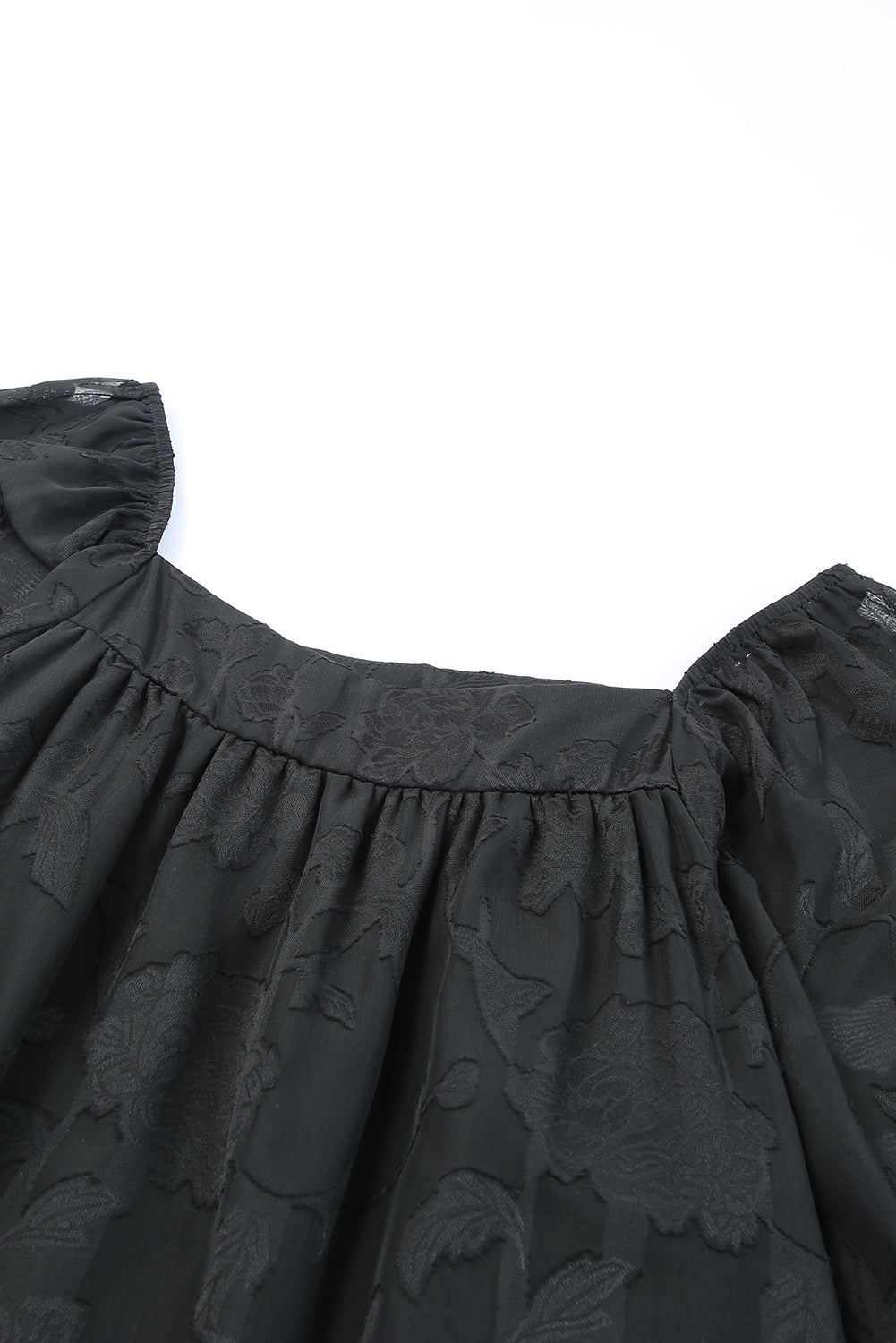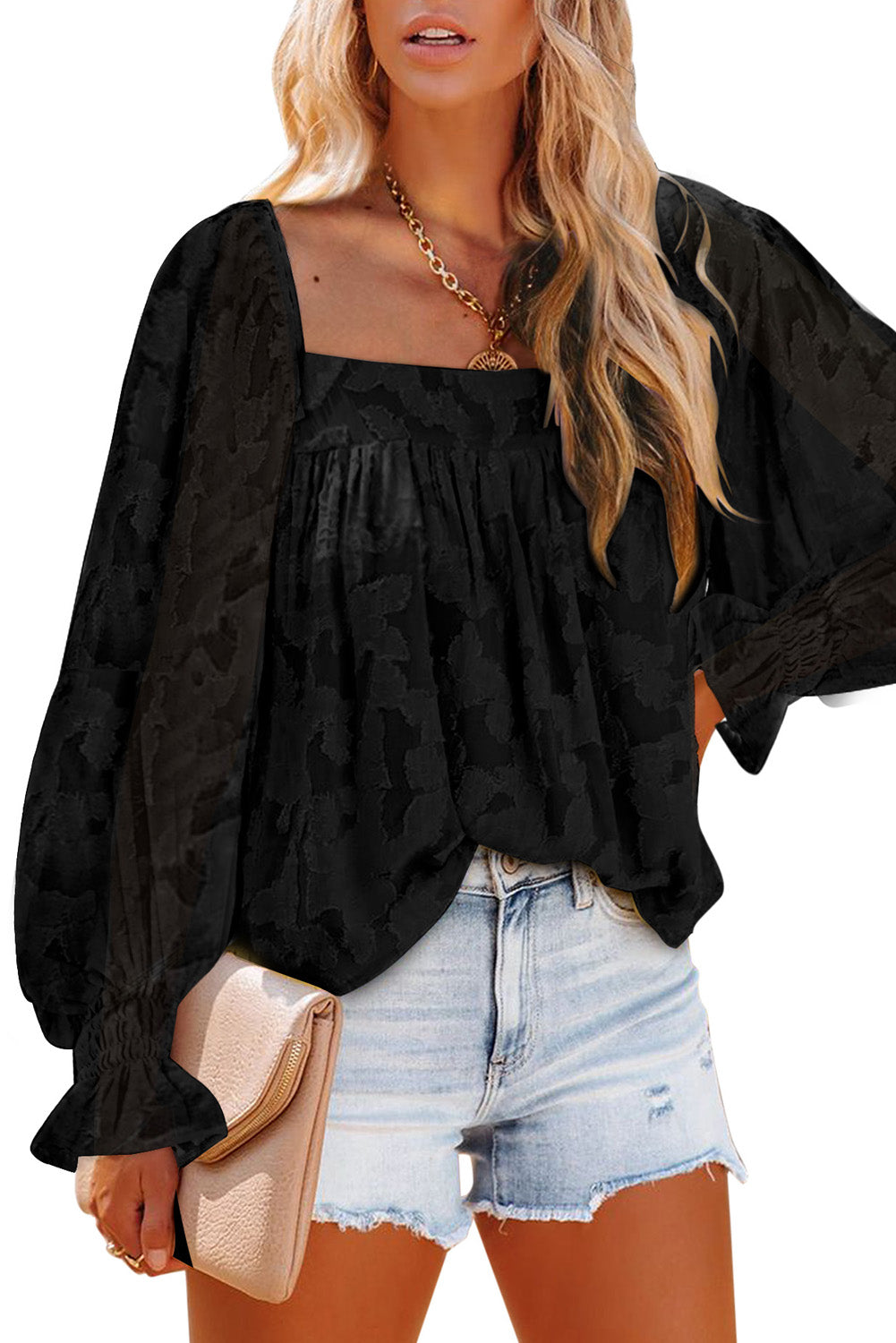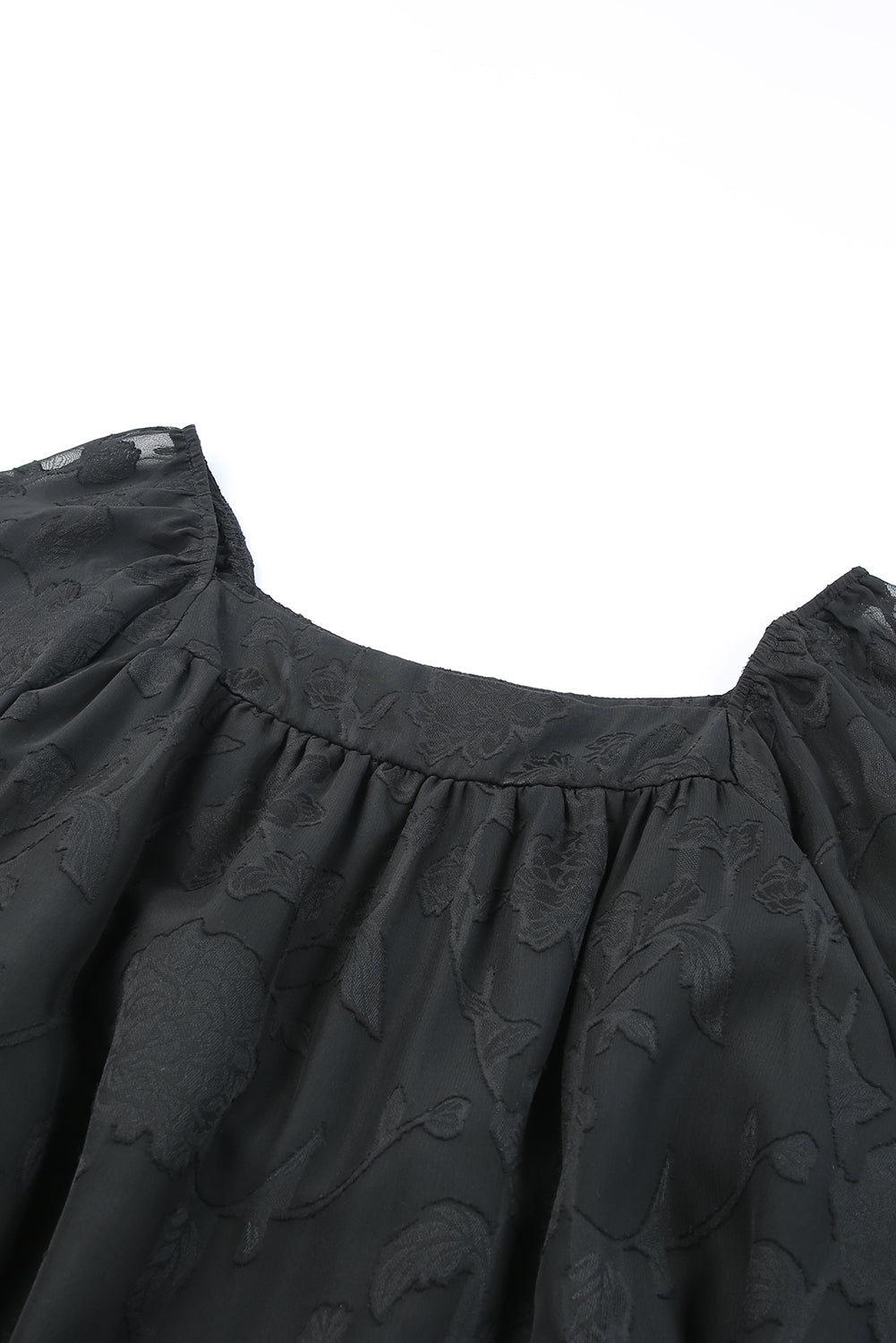 - It features a square neckline, bubble sleeves with ruffled cuffs
