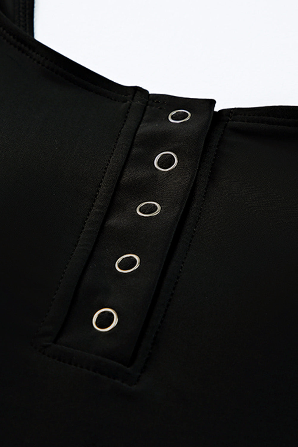 Black Square Neck Sleeveless Fashion Print Tankini Set
