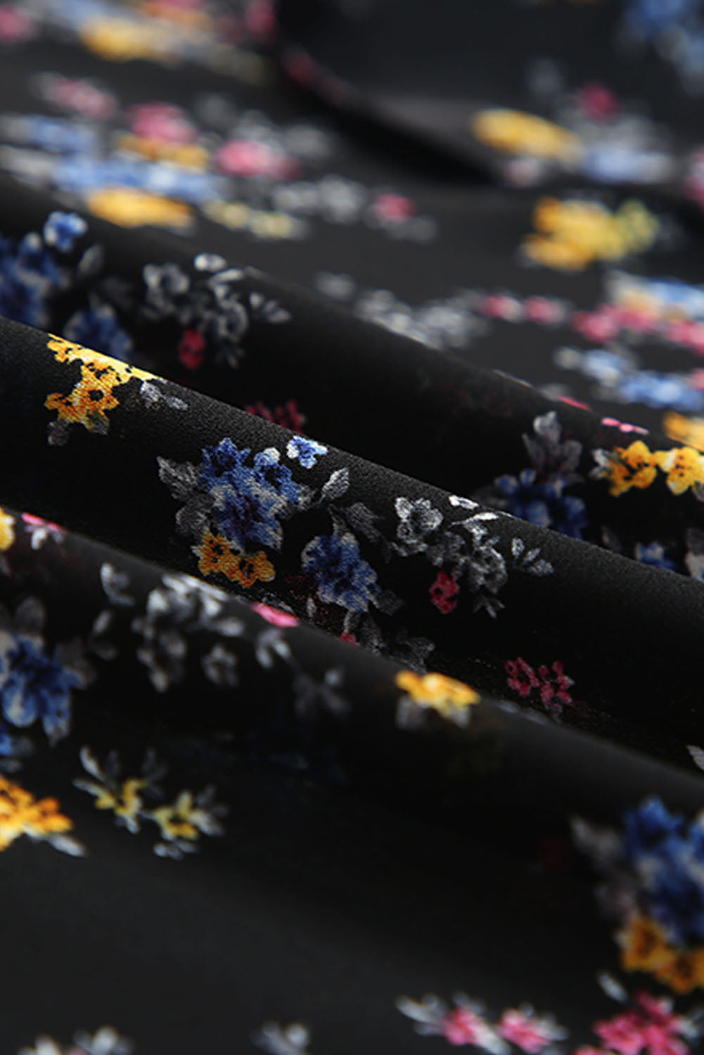 Black Wrap Eyelash V Neckline Long Sleeves Floral Dress