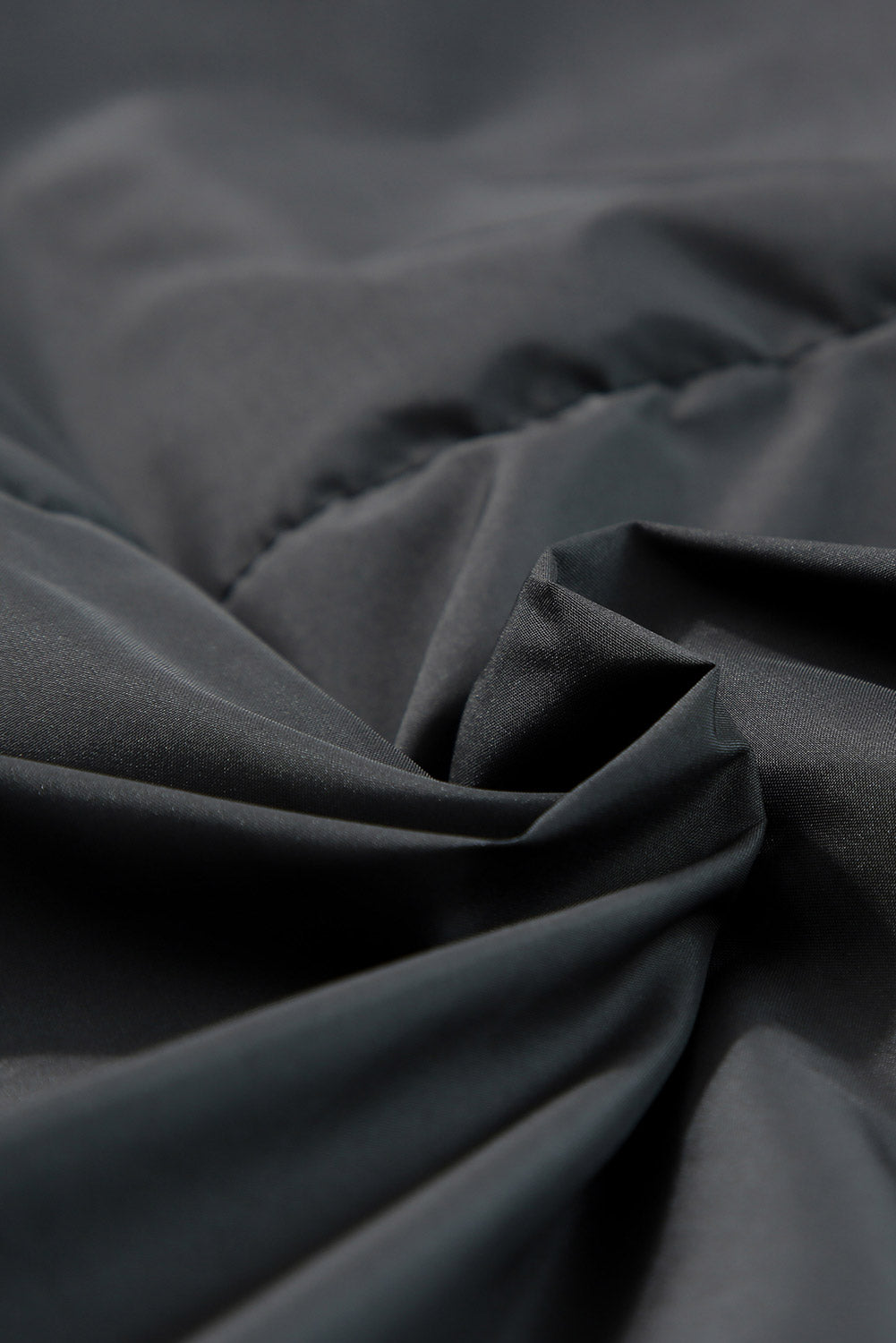 - Designed with a collar, a zip closure, and drawstrings at the hem