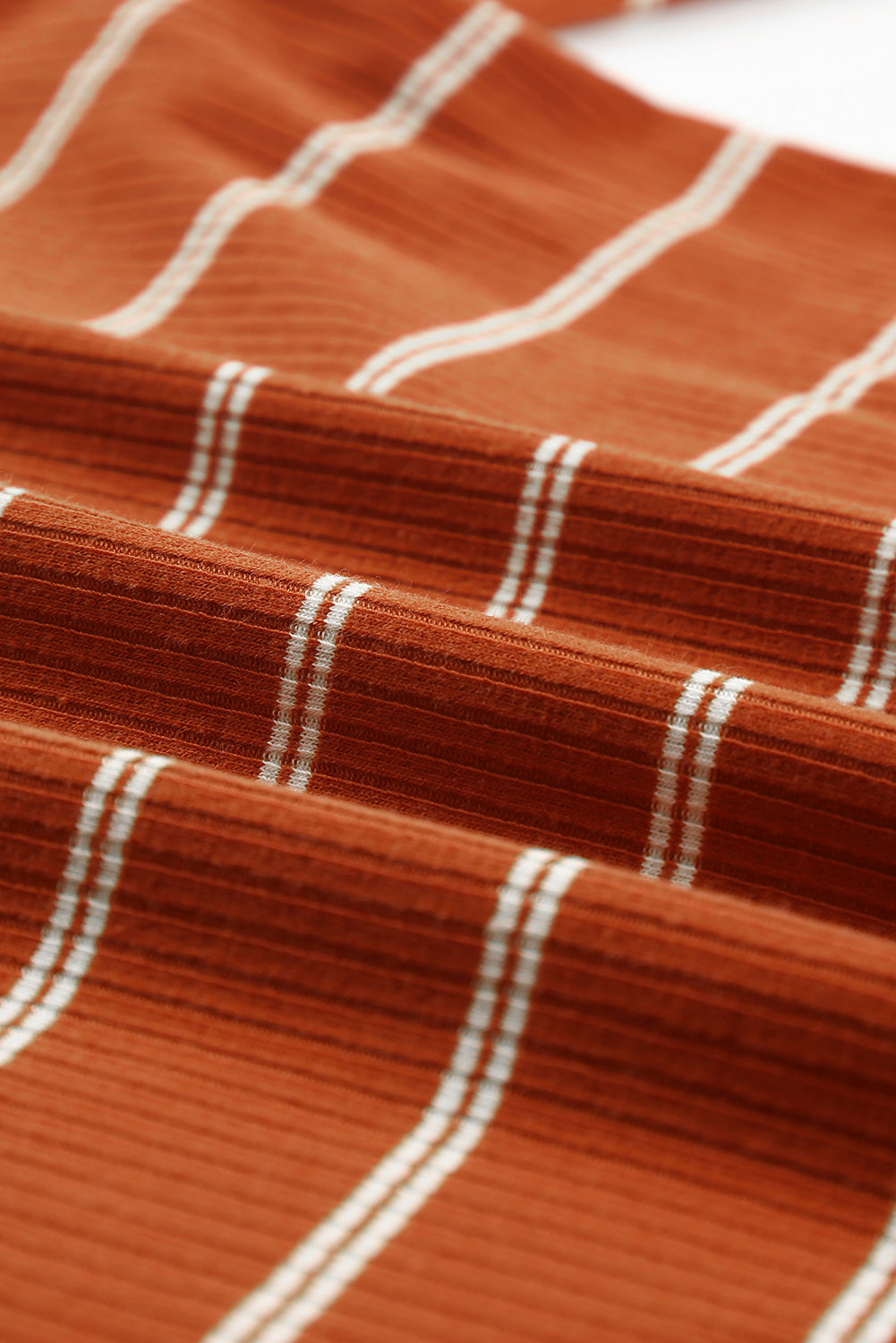 Brown Extend Color Block Cuffs Rib Knit Striped Pullover
