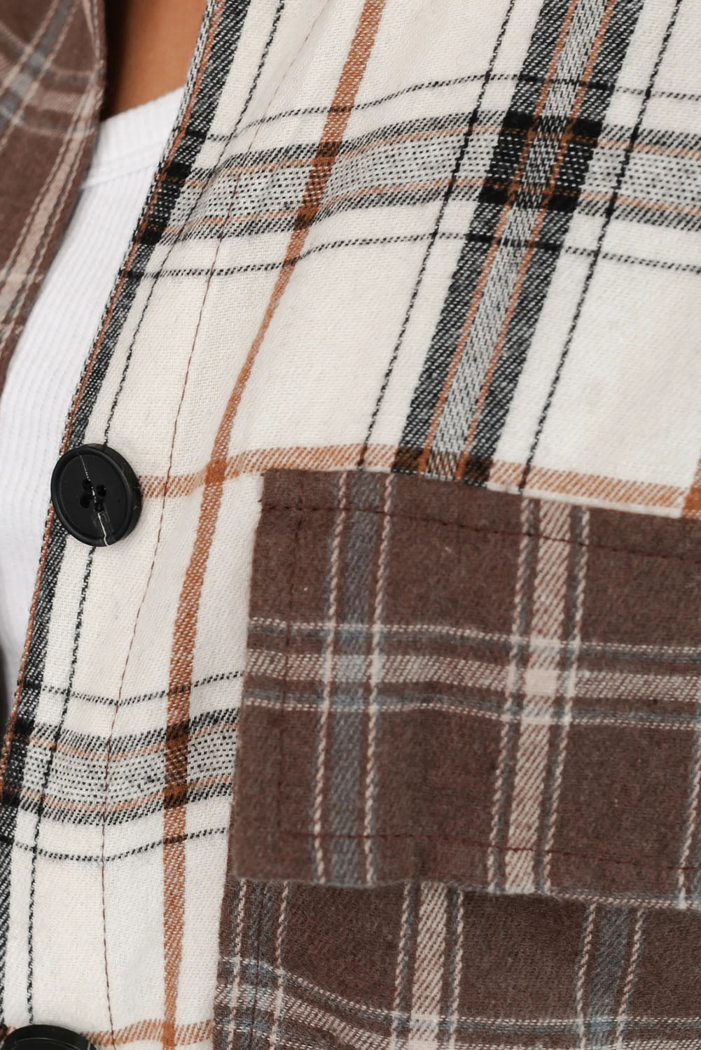 - Features oversize fit, puff sleeve, single chest pocket, and button closure