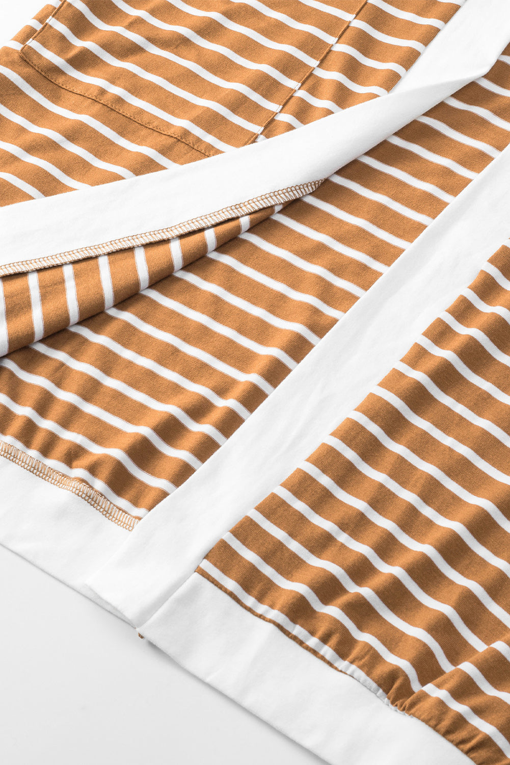 - Elevate your wardrobe with this versatile Striped Side Pockets Open Front Cardigan