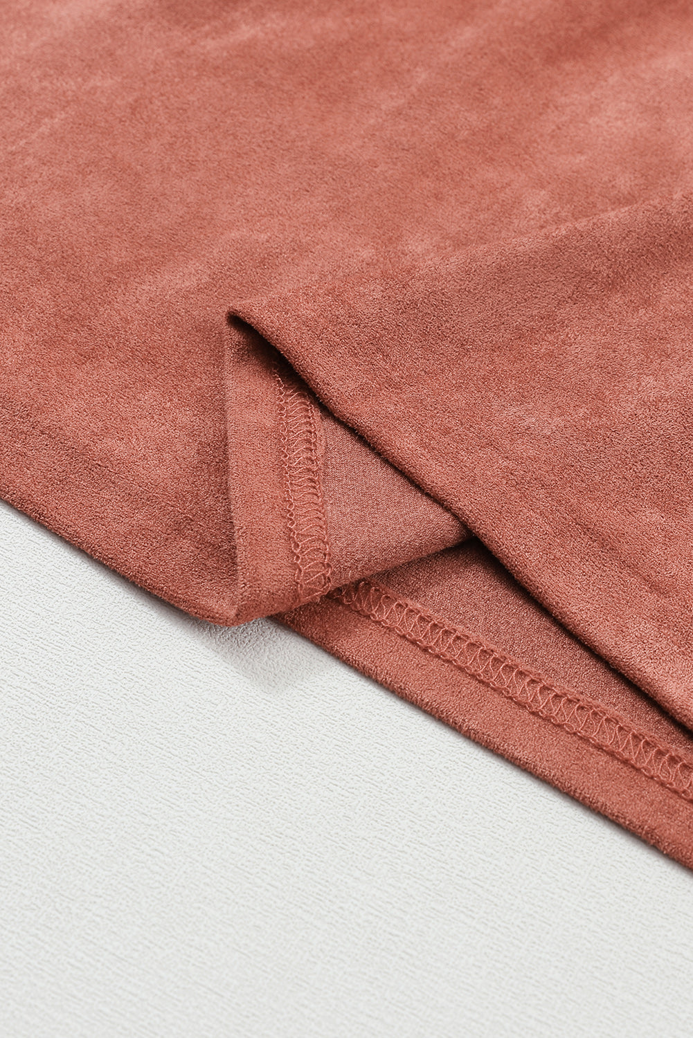 - Crafted from suede fabric, this dress exudes elegance and sophistication