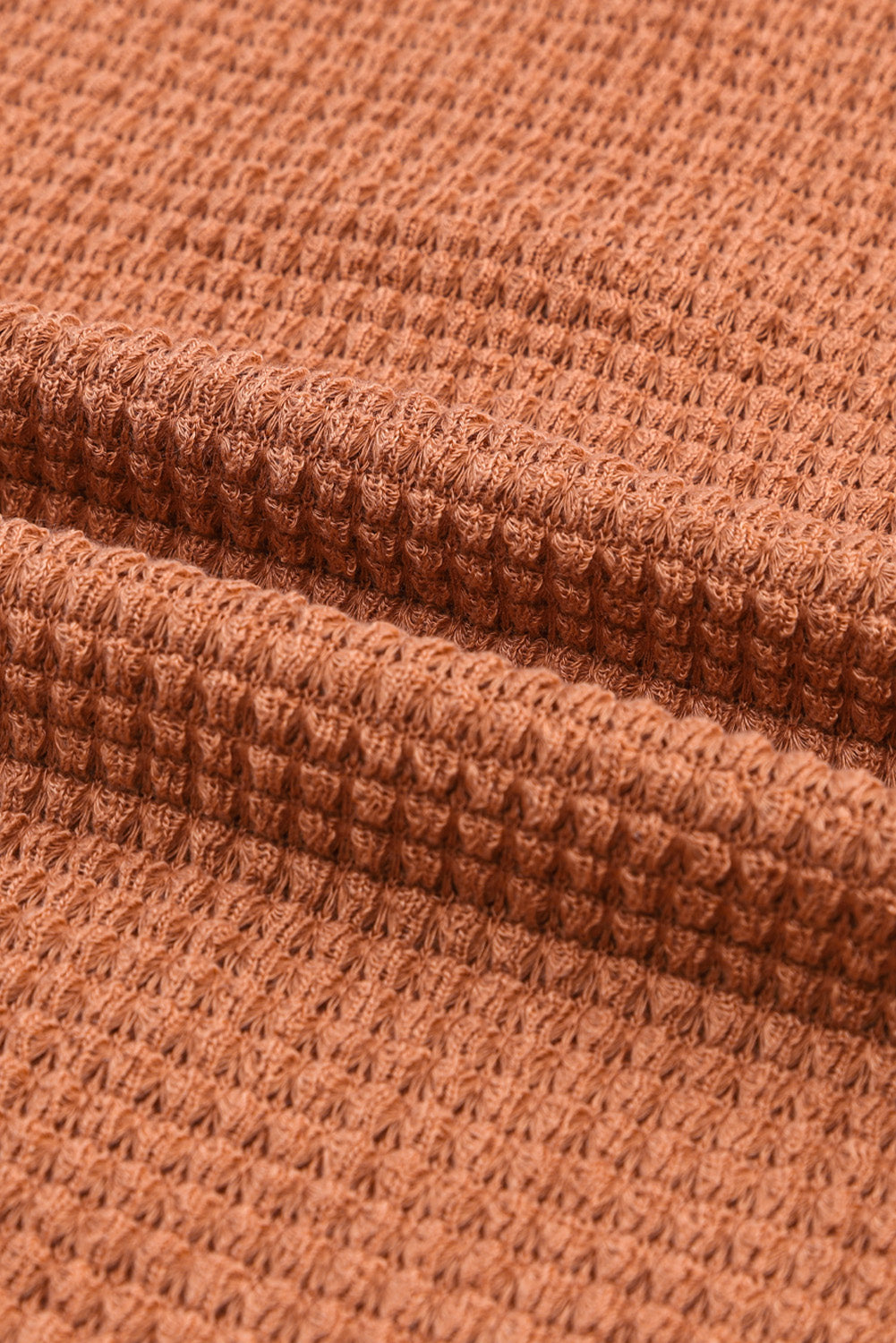 Brown Waffle Knit Button Contrast Trim Long Sleeve Top
