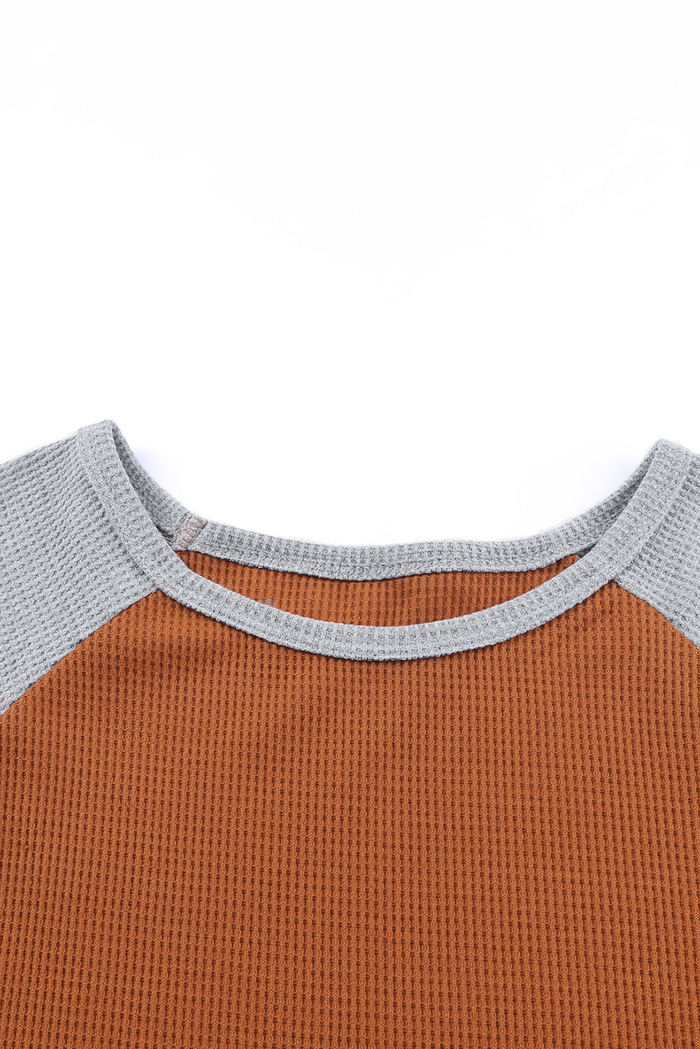 Brown Waffle Knit Leopard Patchwork Long Sleeve Dress