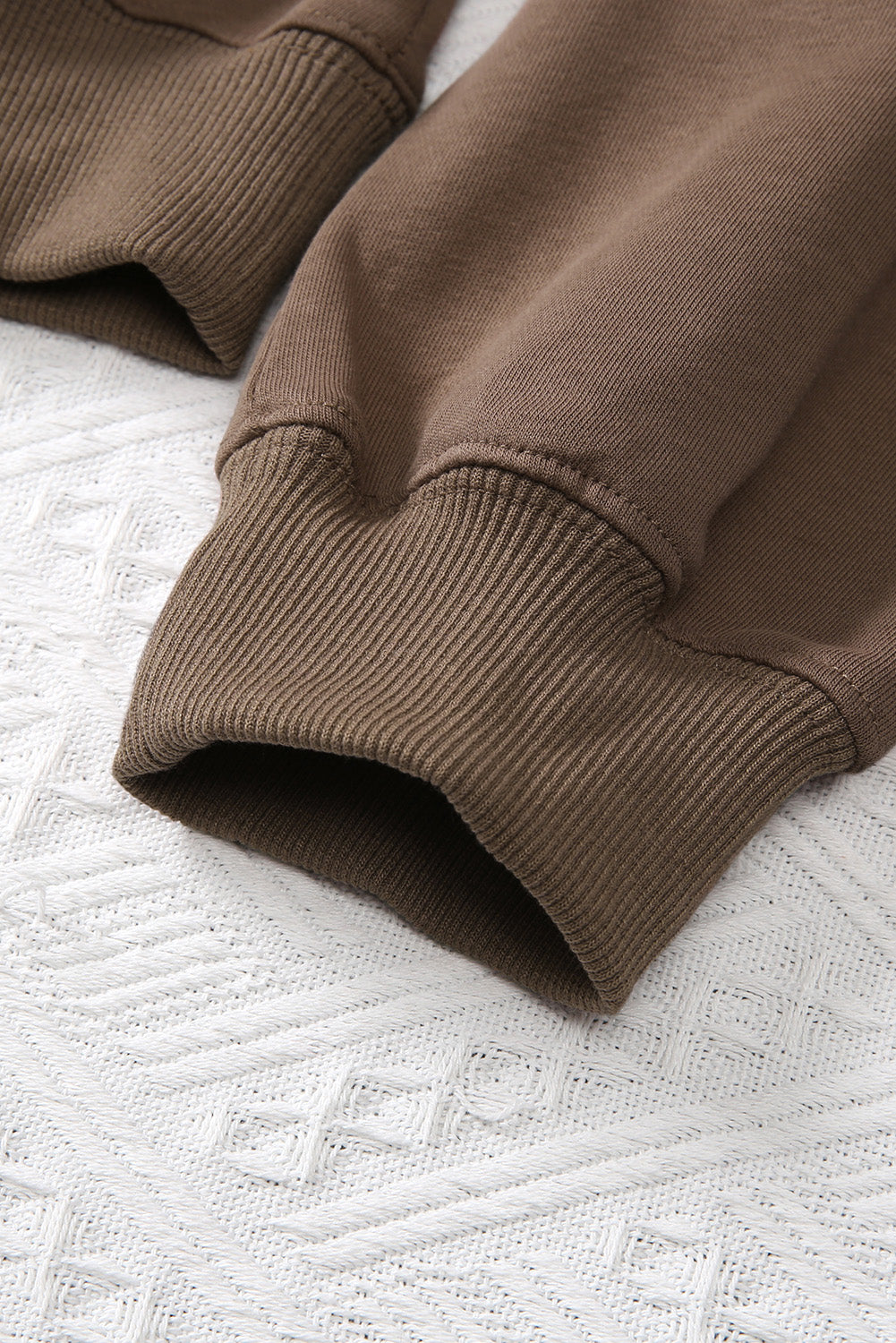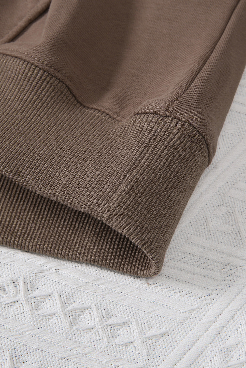 Brown Zipped Turn Down Collar Cropped Sweatshirt with Pocket