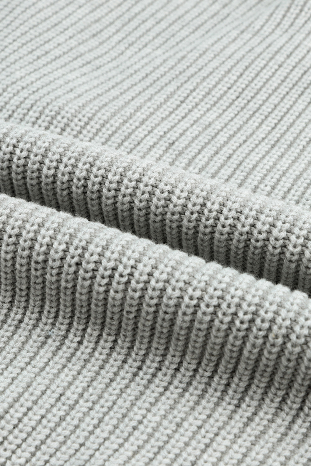 Gray Knitted V Neck Sweater and Casual Pants Set
