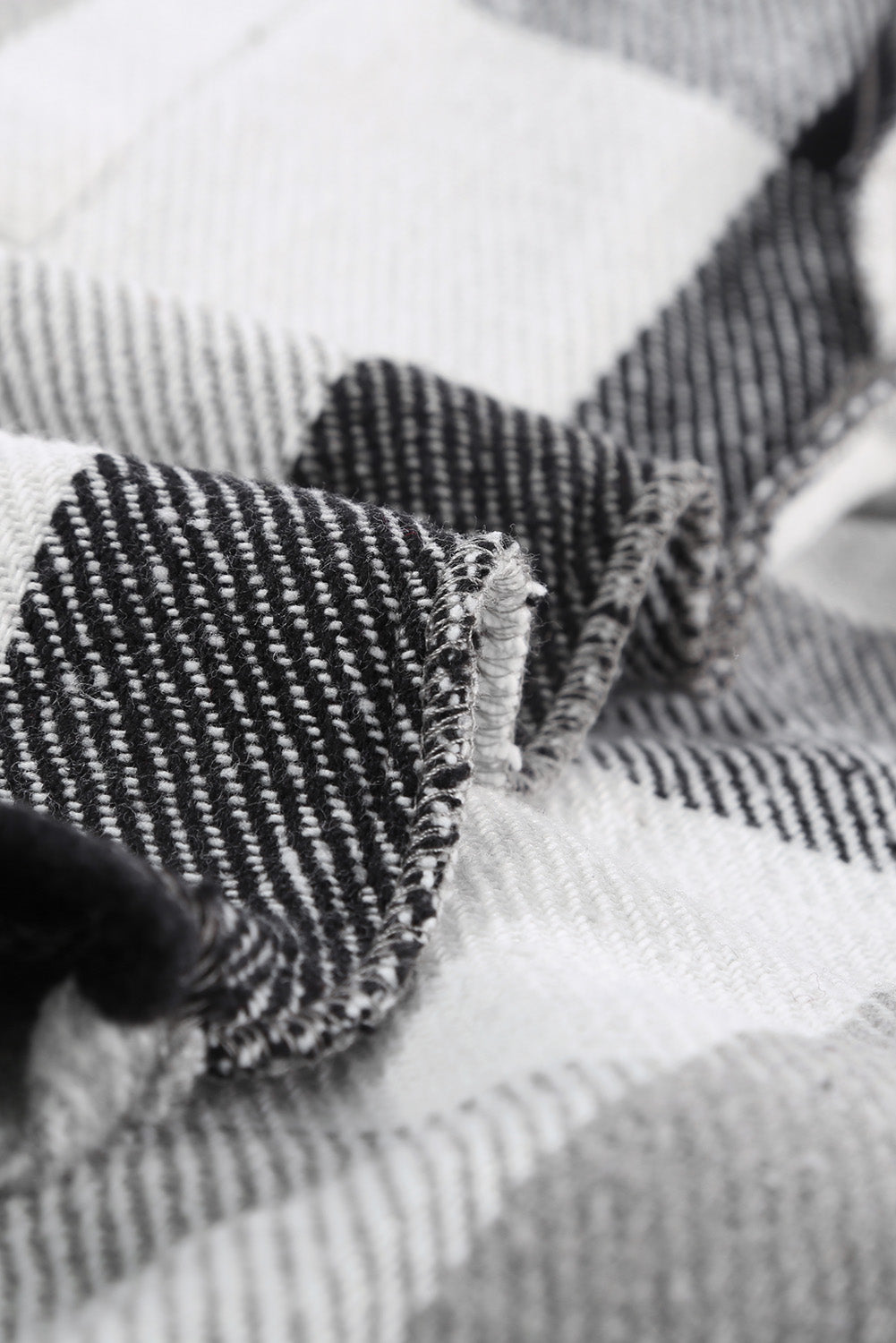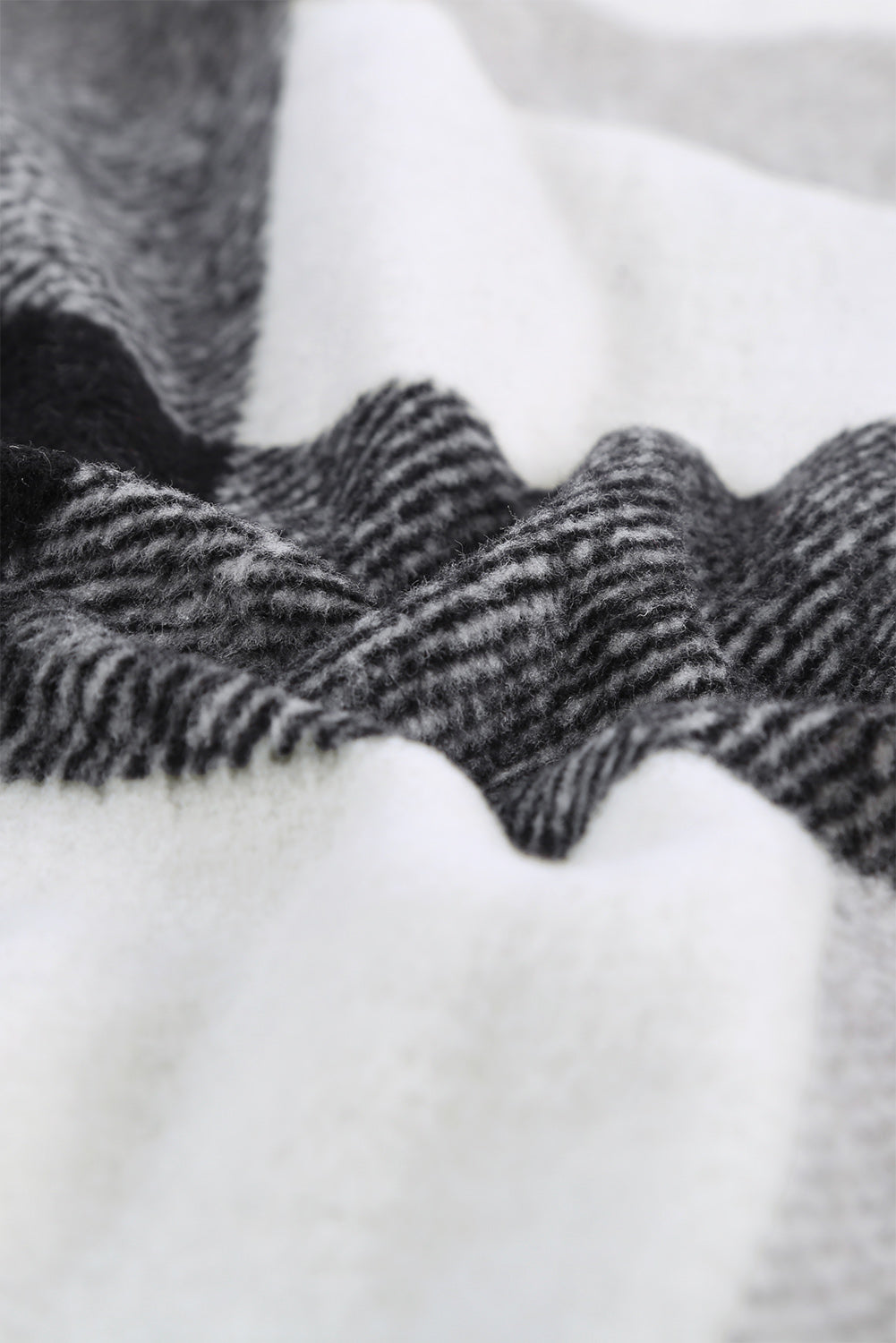 Gray Plaid Color Block Buttoned Long Sleeve Jacket with Pocket