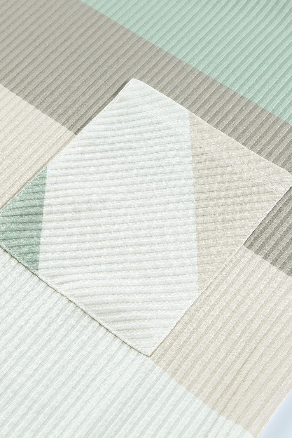 Green Color Block Ribbed Long Sleeve Top with Pocket