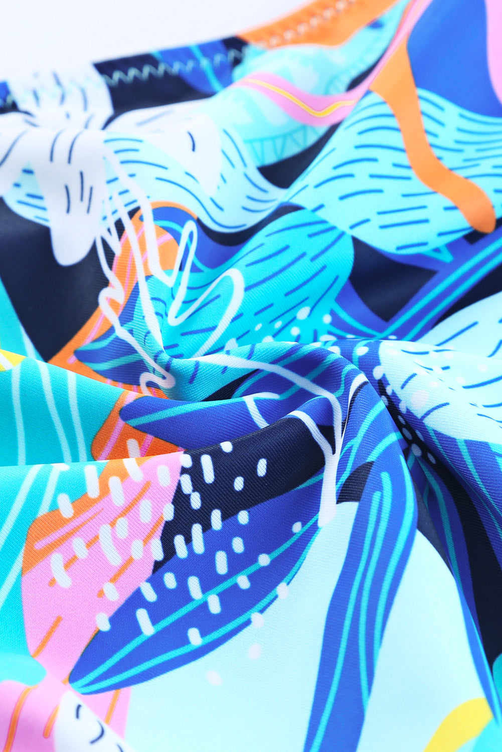 Green Tropical Print Ruffled Square Neck Tie High Waist Swimsuit