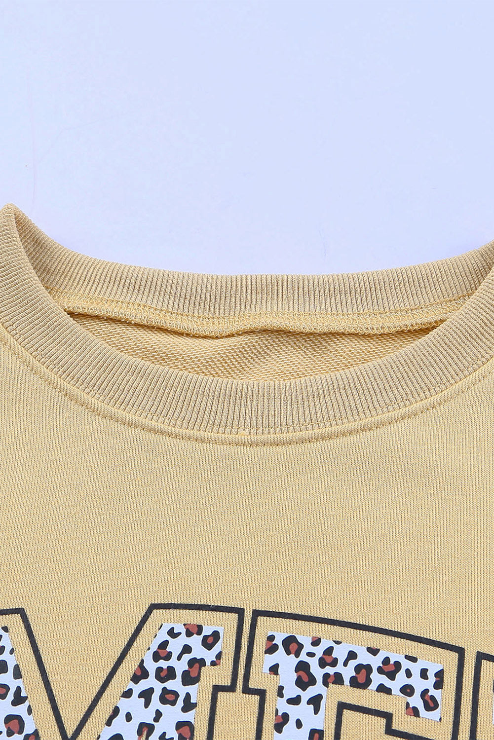 Khaki AMEN Leopard Letter Print Oversized Pullover Sweatshirt