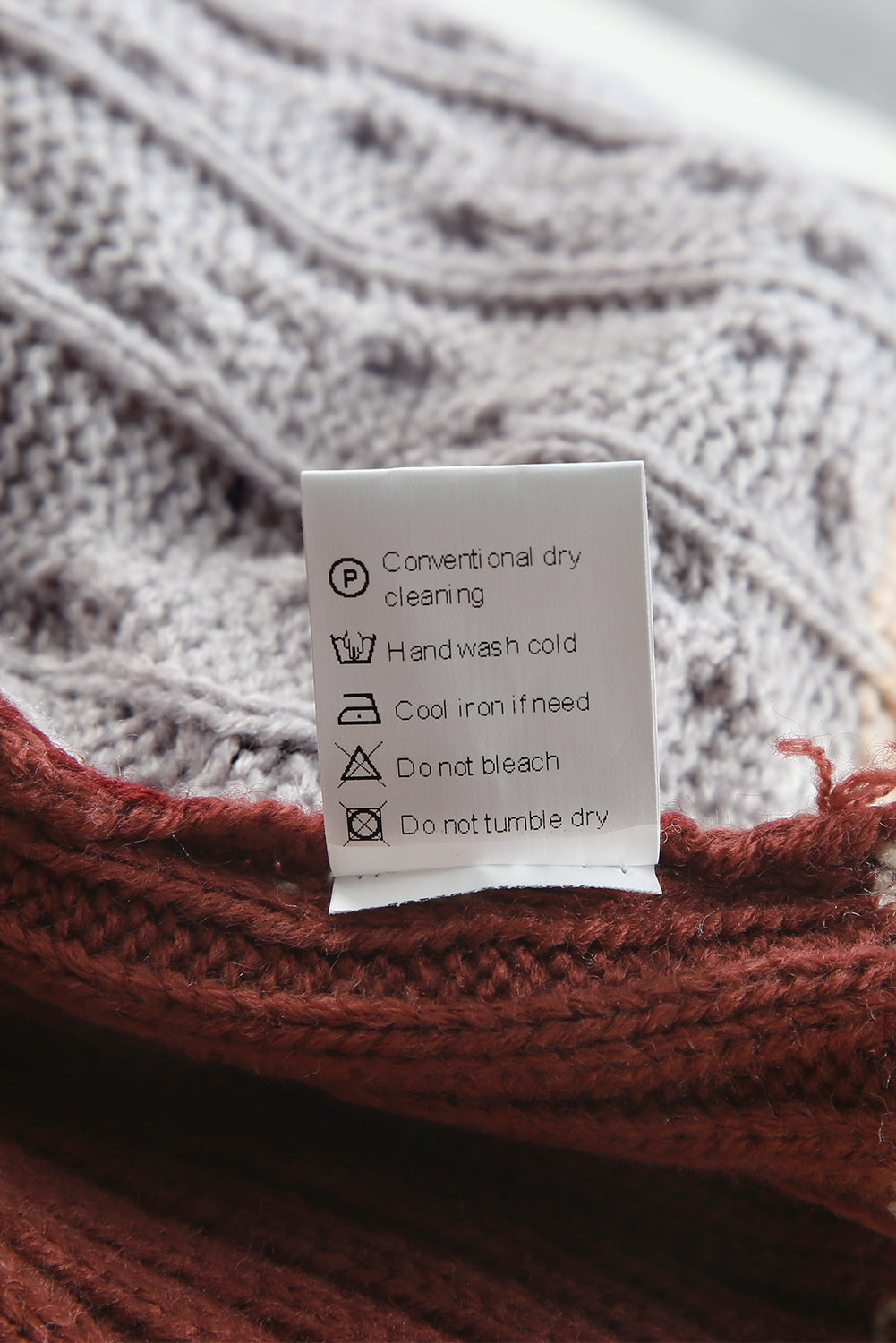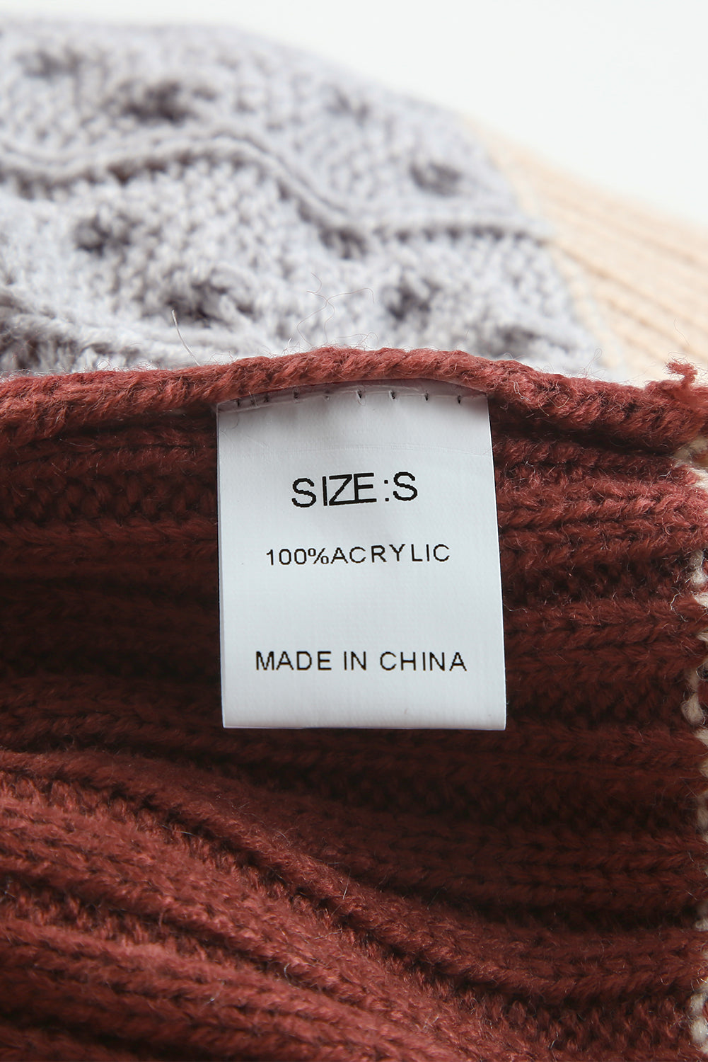 Khaki Color Block V-Neck Long Sleeve Relaxed Sweater