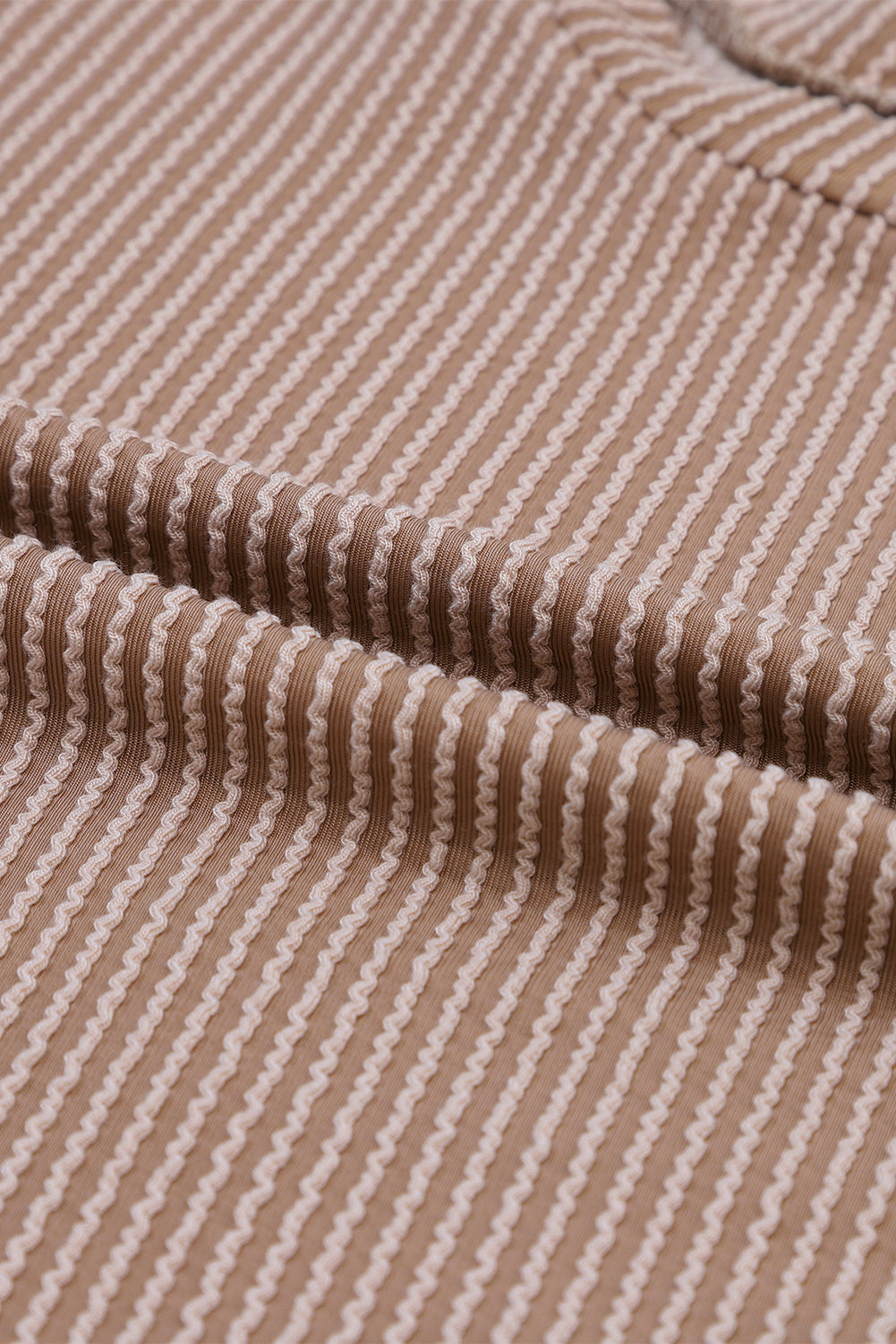 Khaki Cording Drop Shoulder Puff Sleeve Casual Long Sleeve Top