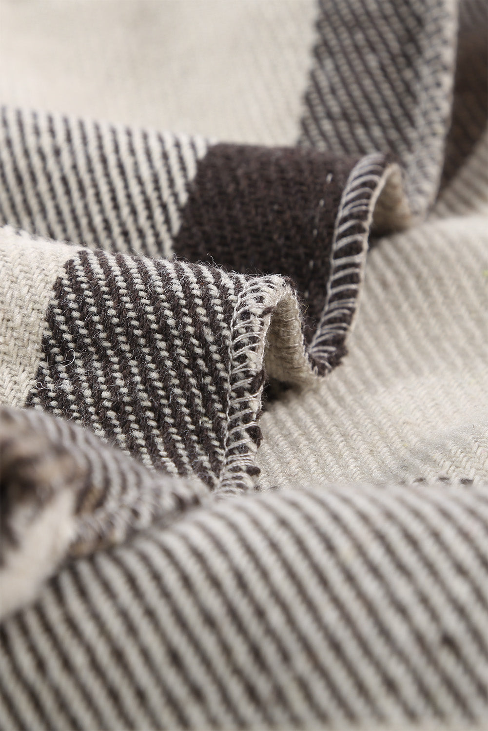 Khaki Plaid Color Block Buttoned Long Sleeve Jacket with Pocket