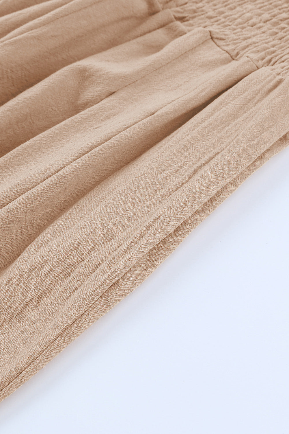 Khaki Smocked Wide Waistband High Waist Wide Leg Pants