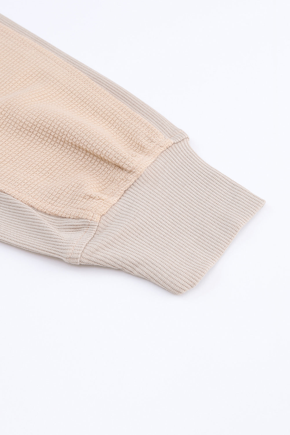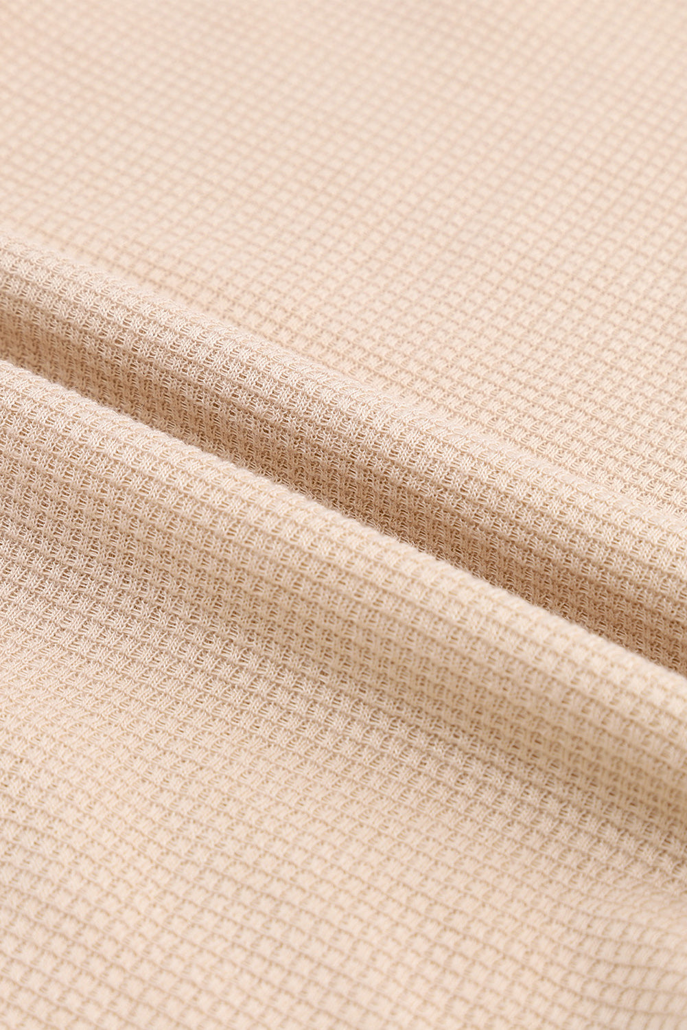 Khaki Thermal Waffle Knit Full Zipper Hooded Jacket