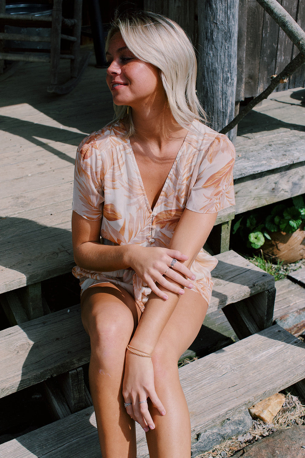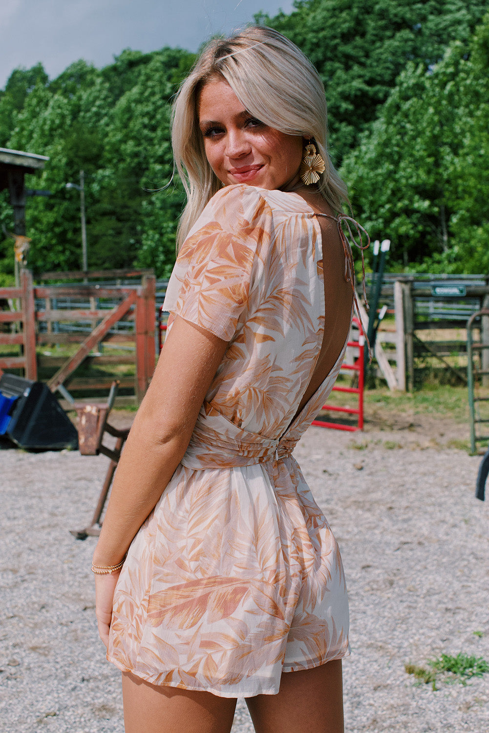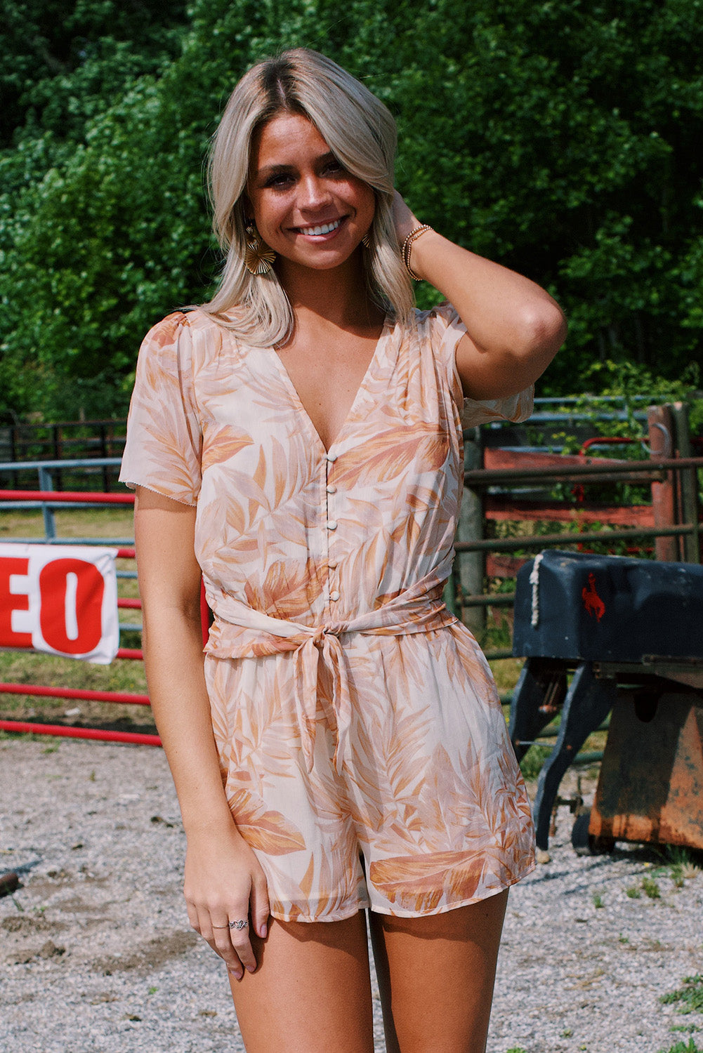 - Romper with tropical leaf print adds some touch of summer to women’s wardrobe