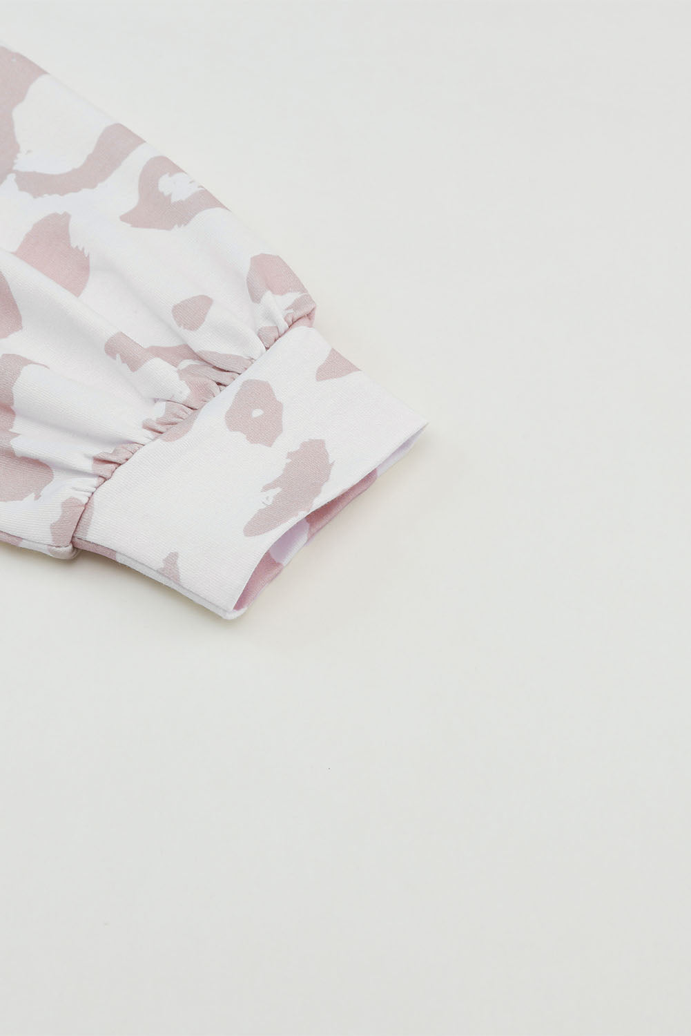 Leopard Animal Print Contrast Stripes Patchwork Puff Sleeve Knit Top