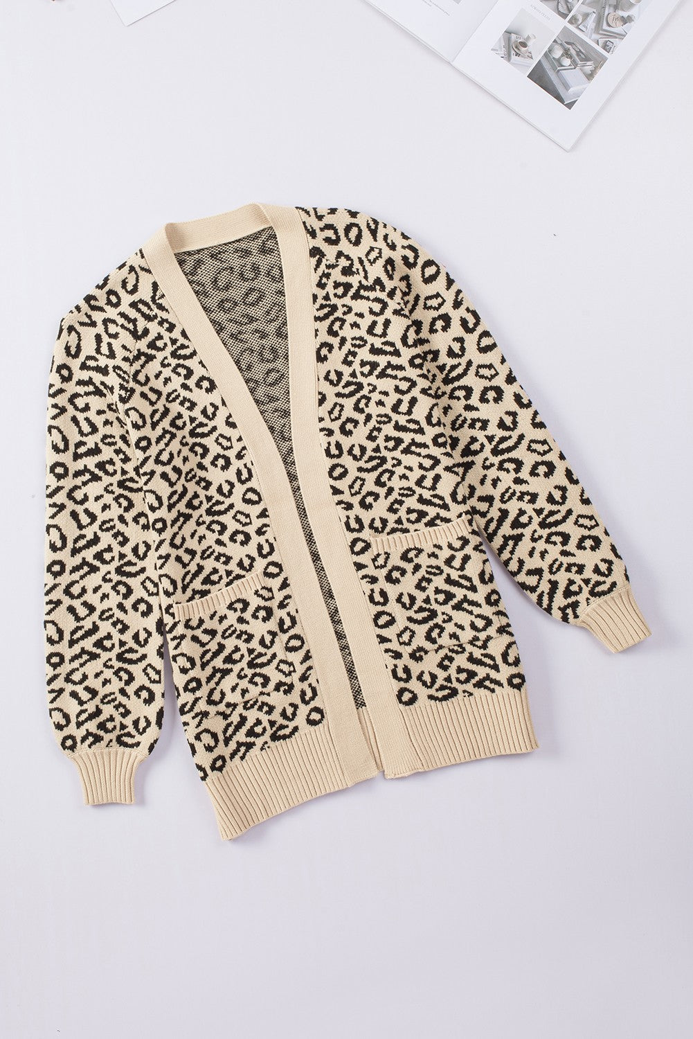 - Leopard cardigan is very chic and makes wearer shine in crowds