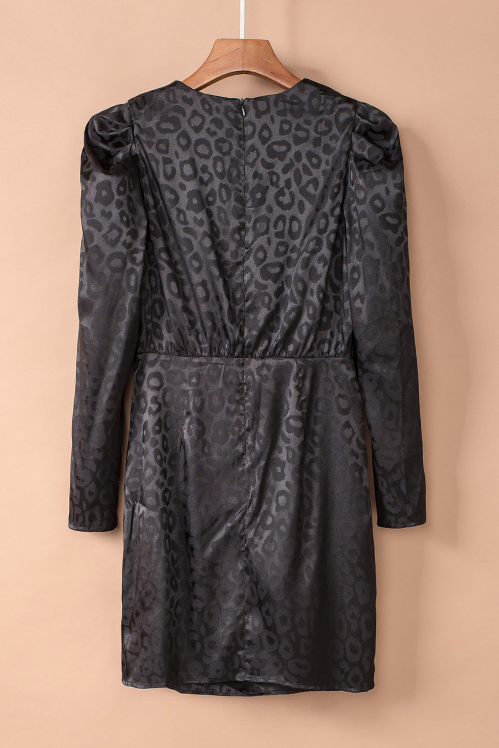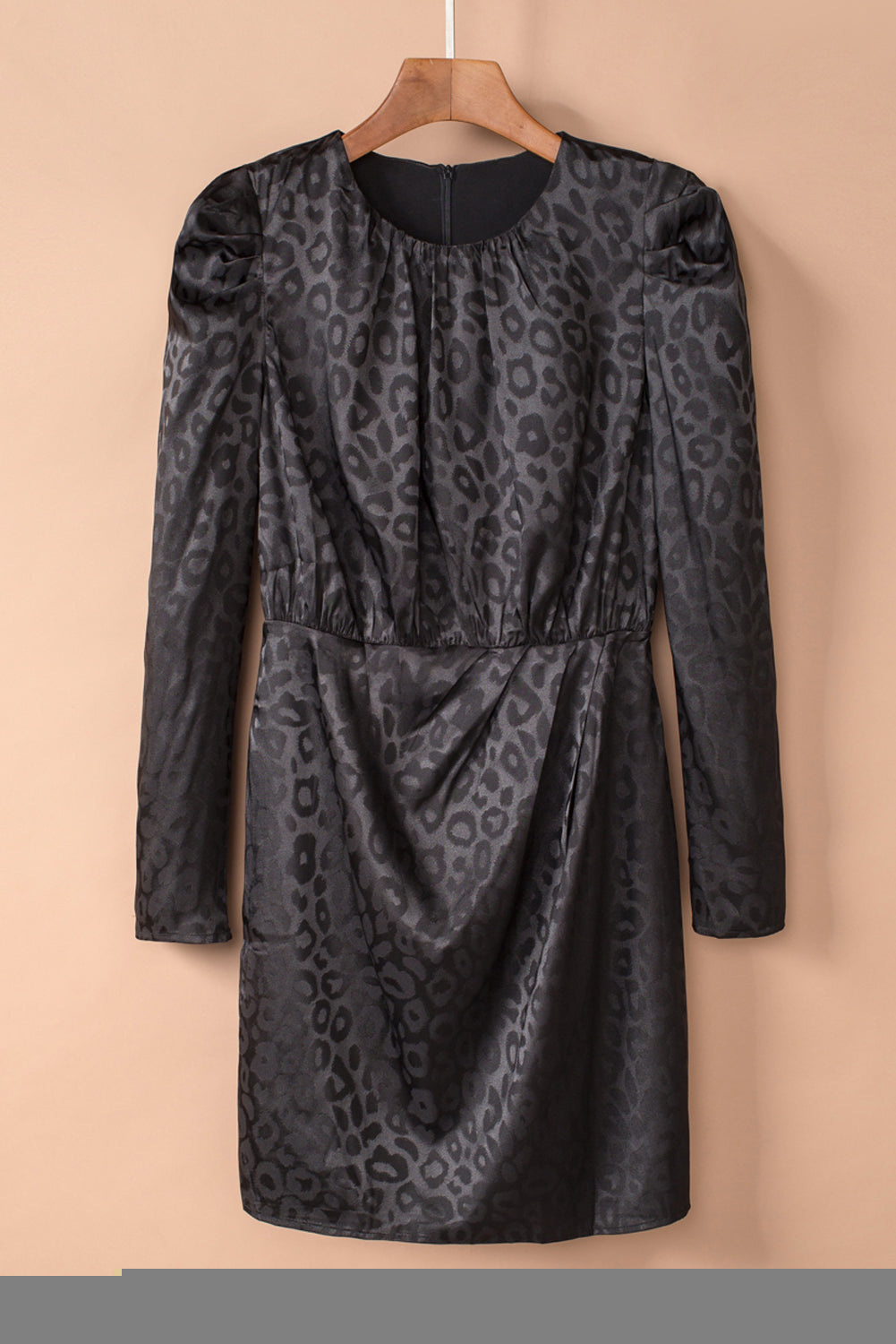 - Round neck, puff sleeves, ruched detail front and thigh-high length