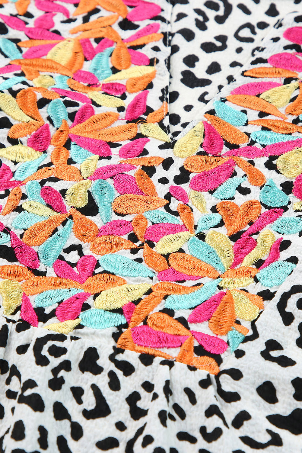 Leopard Ruffle Shoulder Embellished V-neck Sleeveless Top