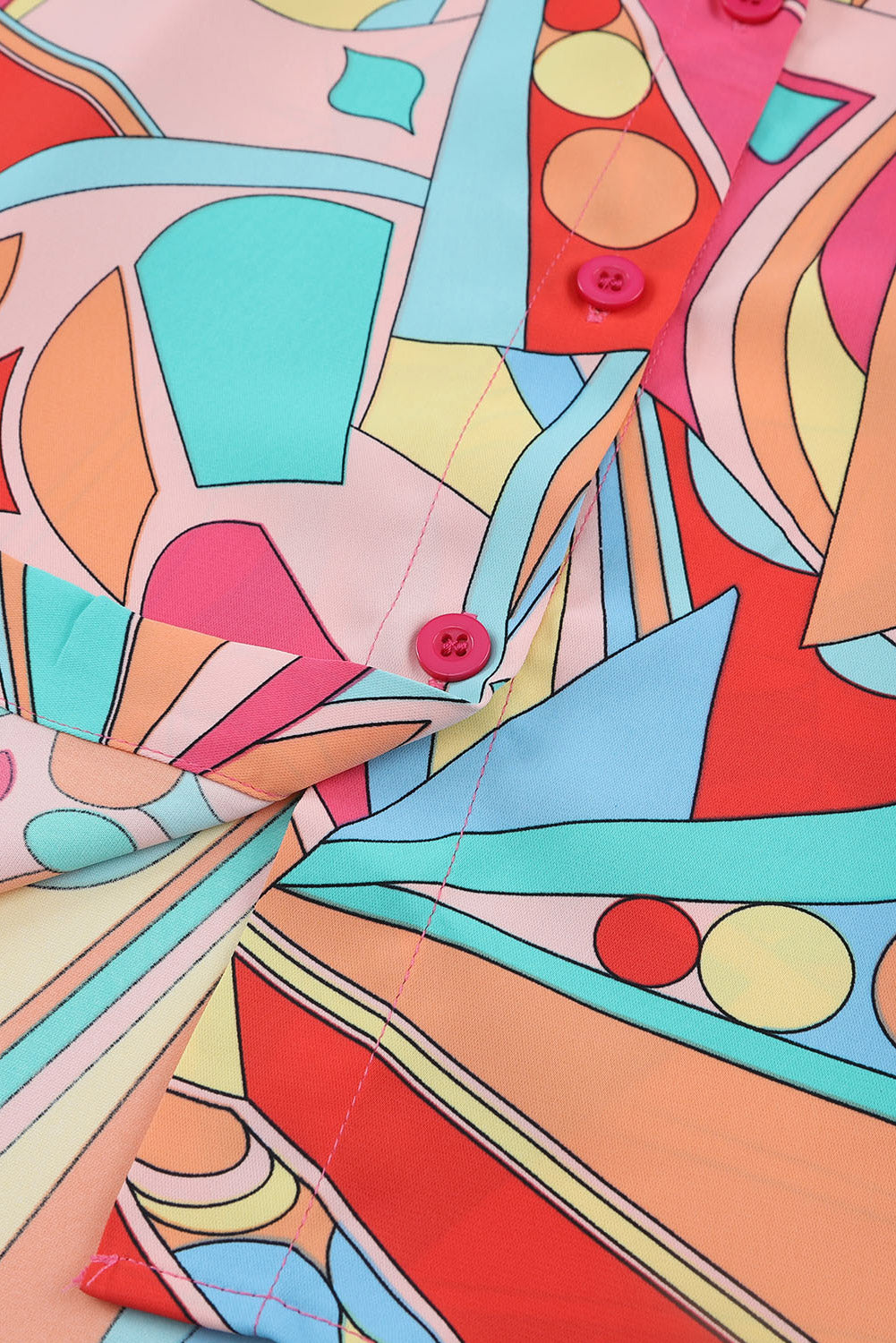 Multicolor Abstract Geometry Print Half Puff Sleeve Loose Shirt