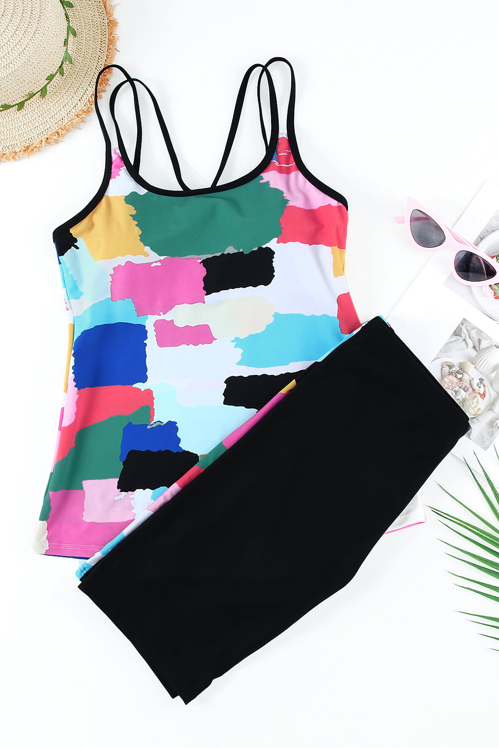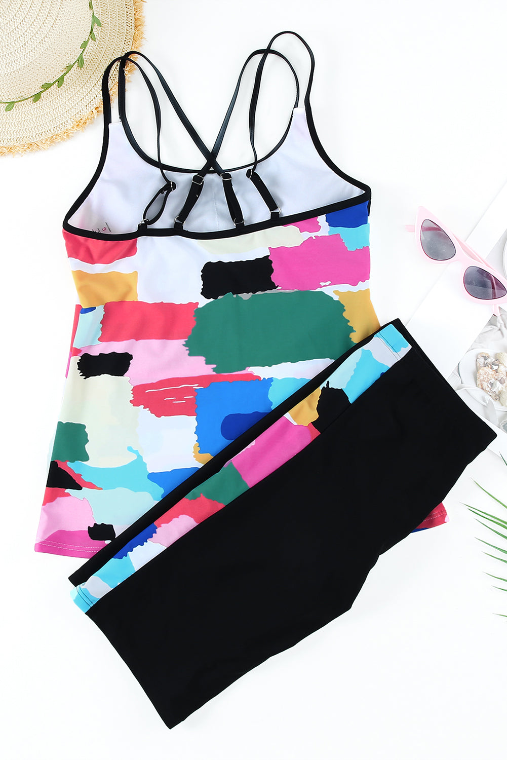 Multicolor Abstract Print Criss Cross Strappy Two-piece Tankini