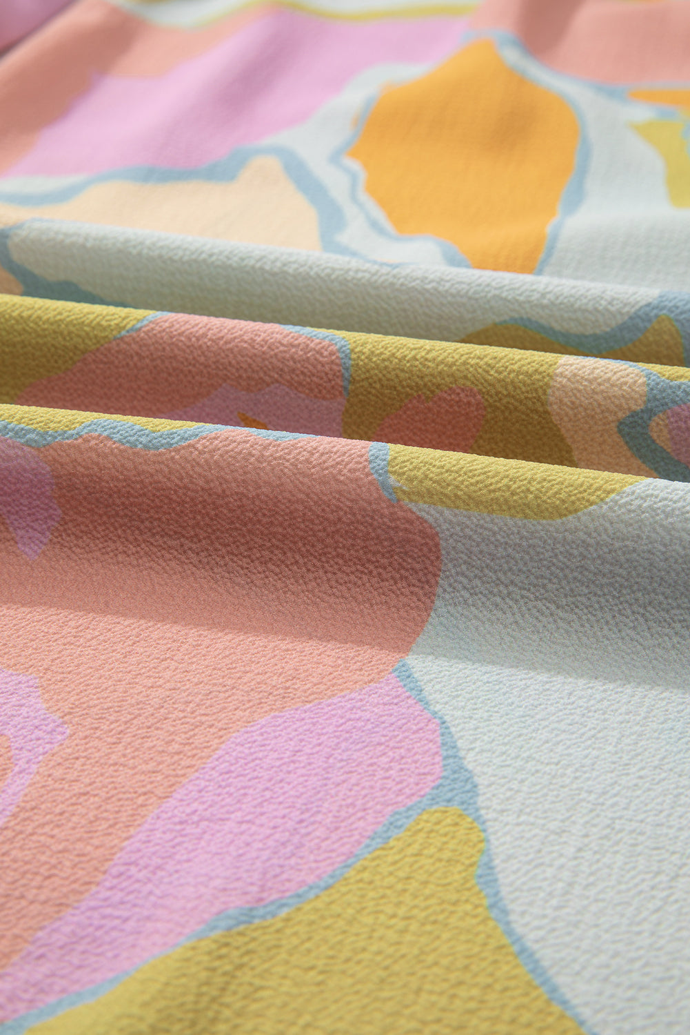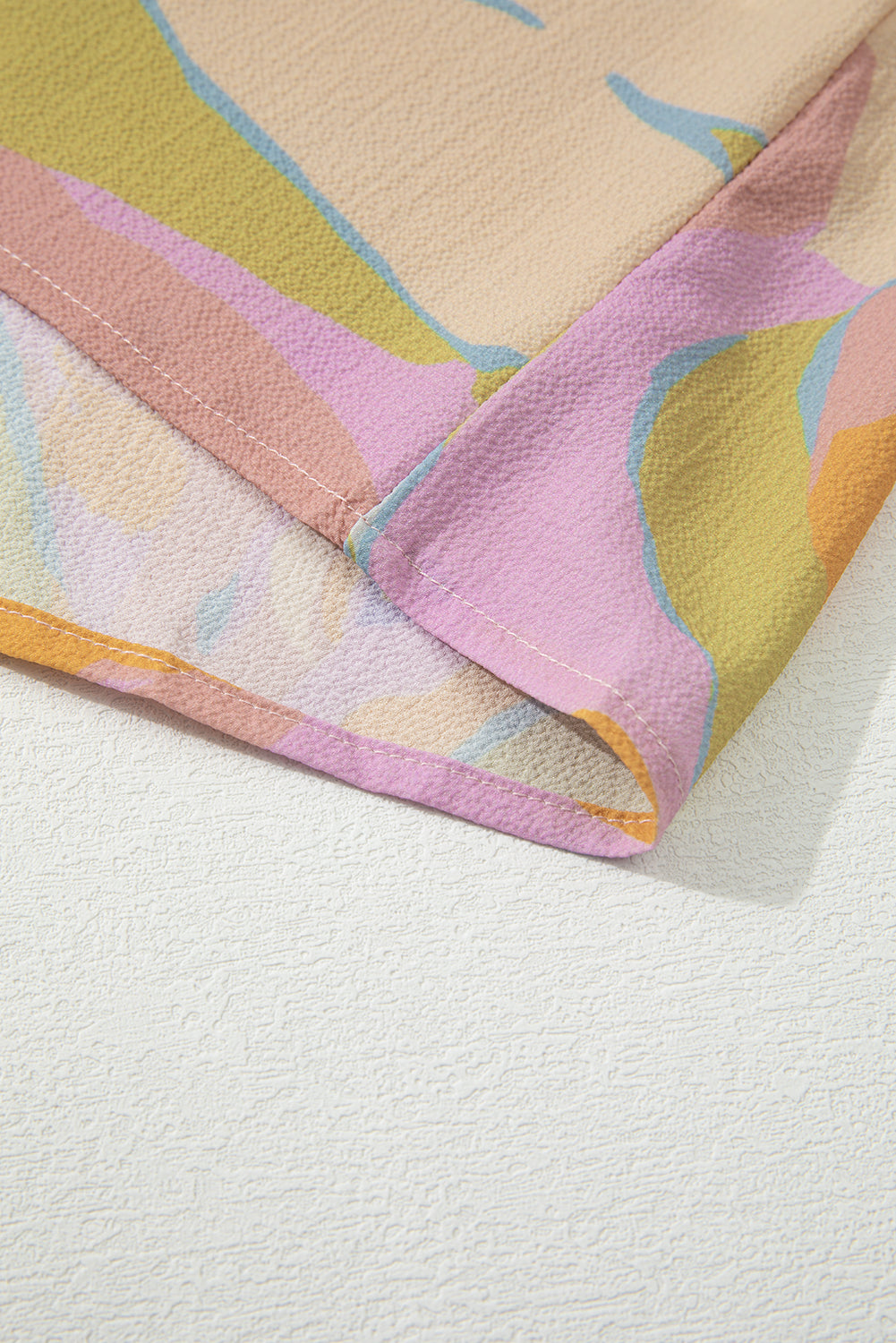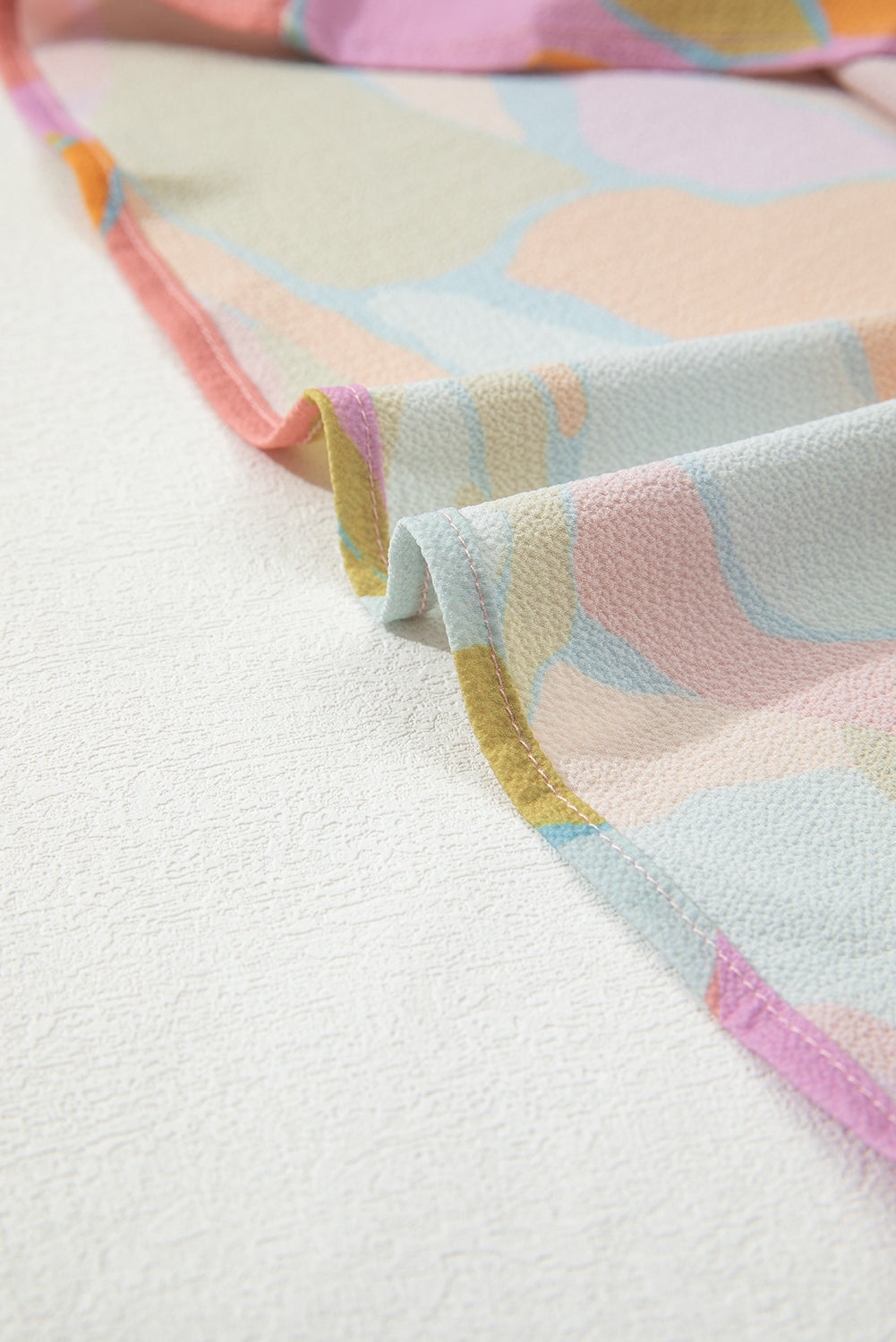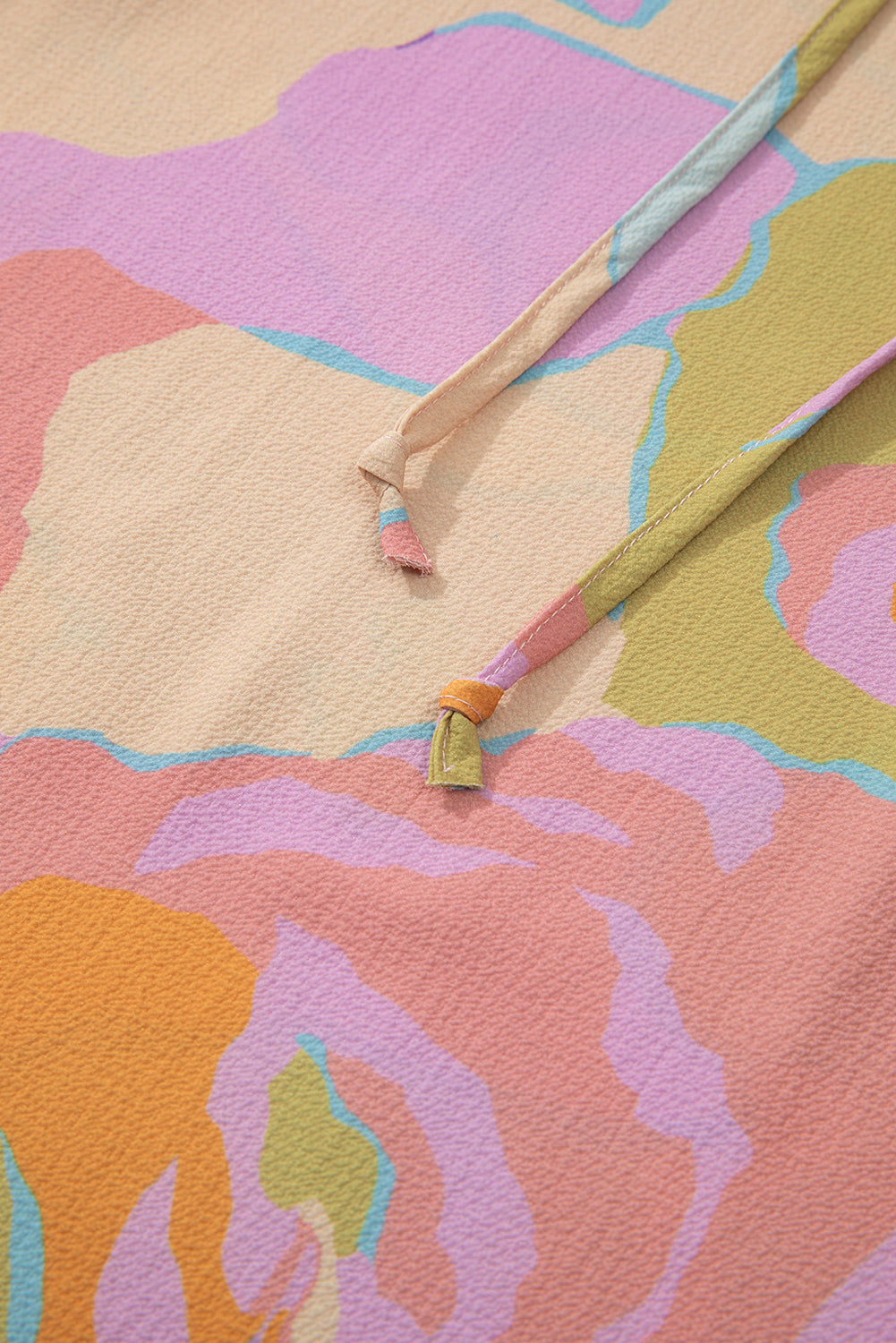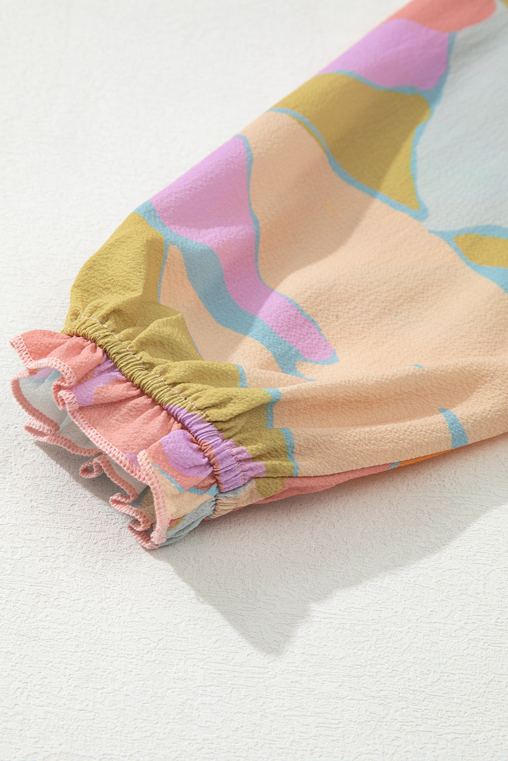 Multicolor Abstract Print Frill Split Neck Babydoll Mini Dress