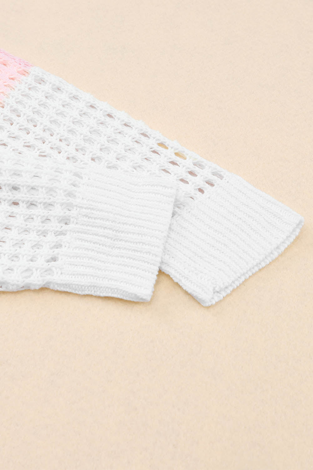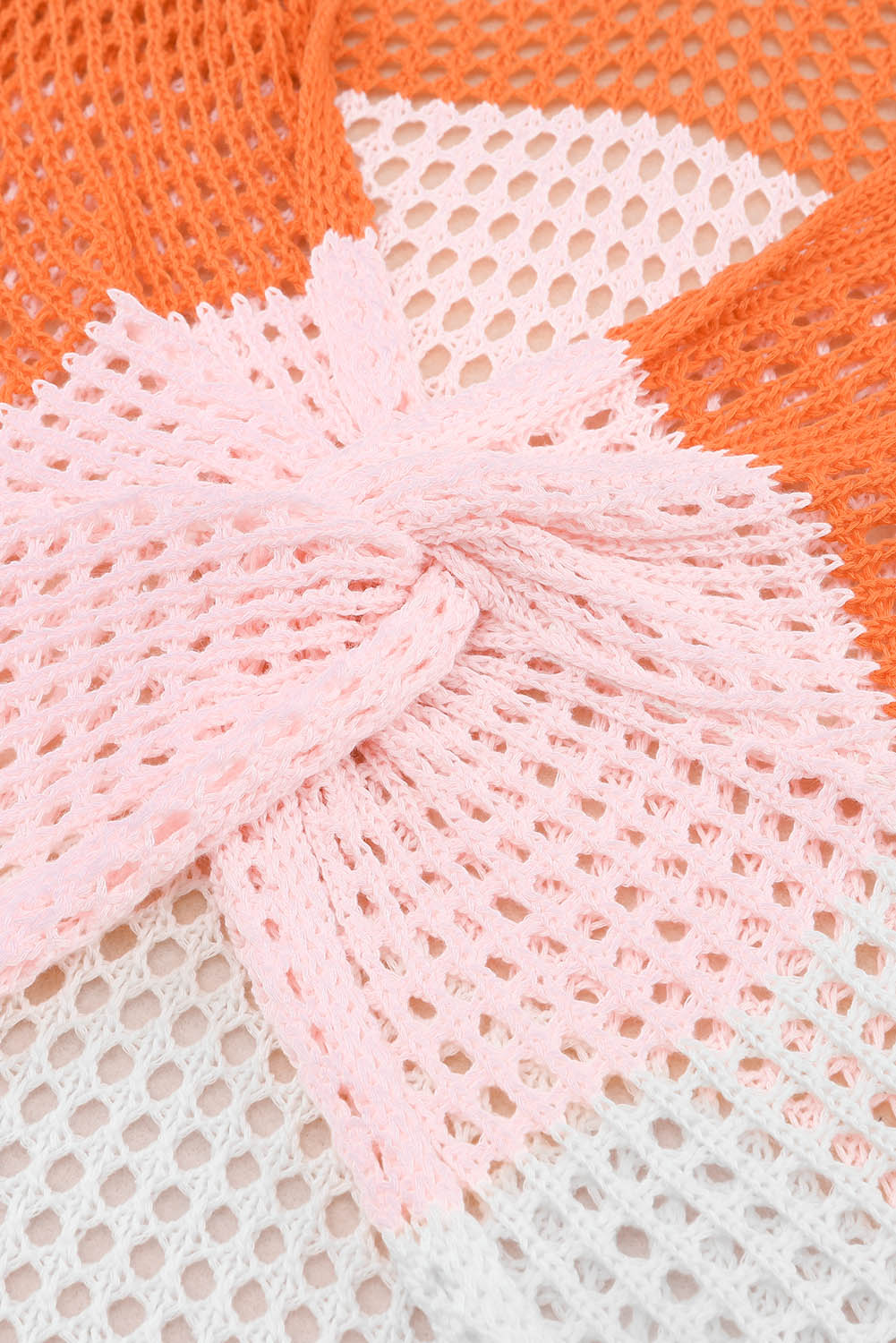 Multicolor Color Block Eyelet Long Sleeve Twisted Back Knit Top