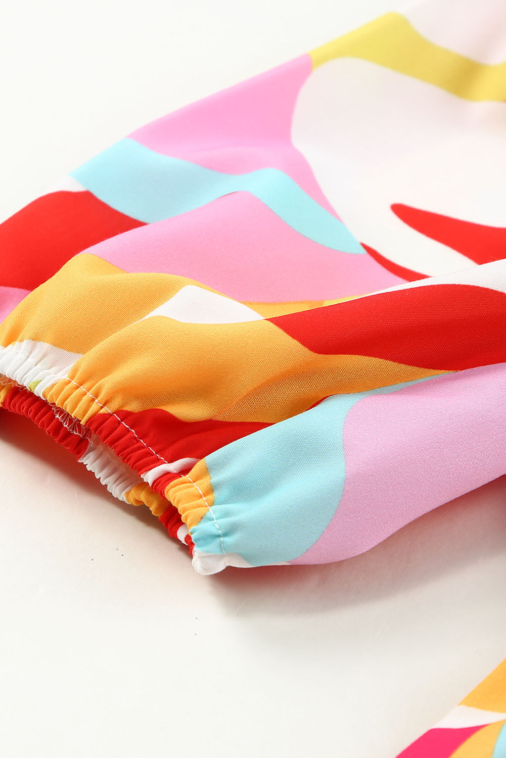 Multicolor Geometric Print Smocked Babydoll Mini Dress