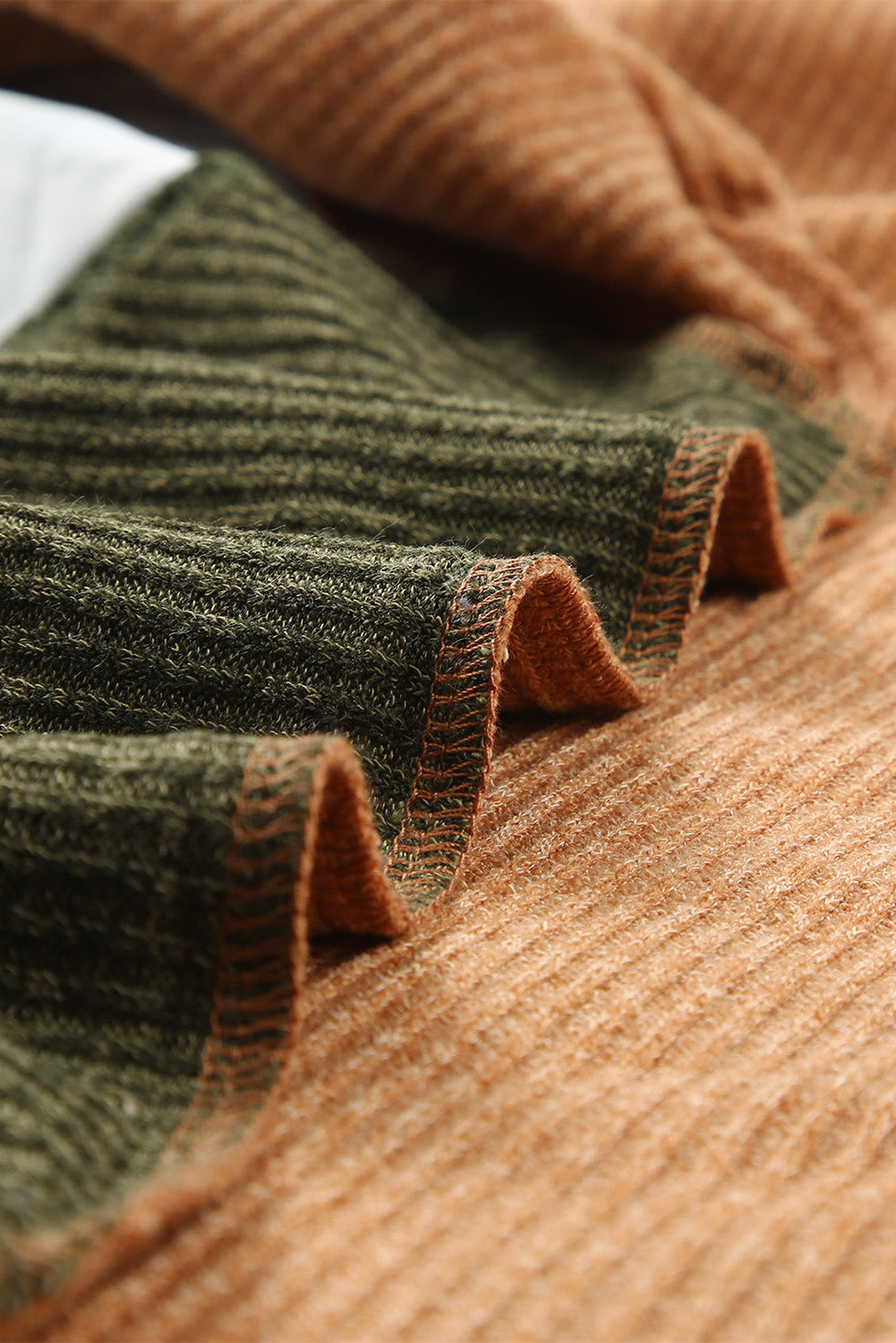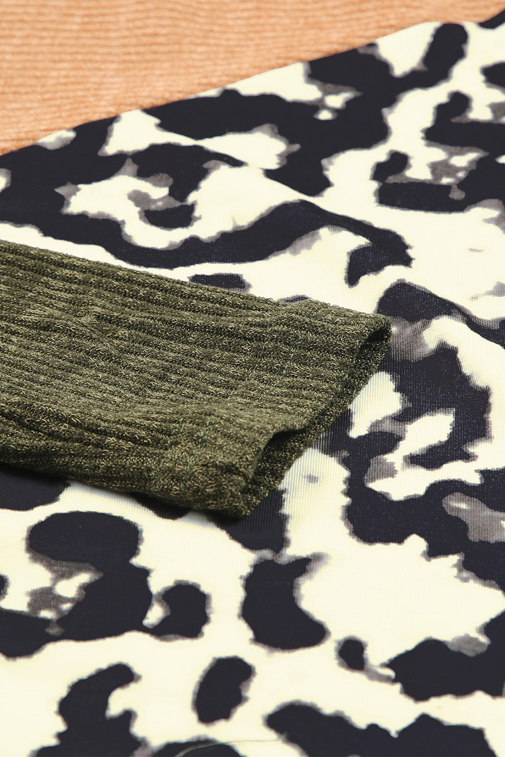 Multicolor Leopard Color Block Long Sleeve Knit Top