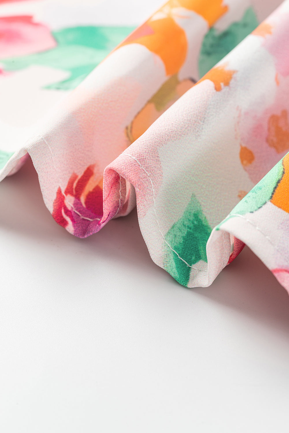 Multicolor Watercolor Floral Square Neck Ruffle Sleeve Blouse
